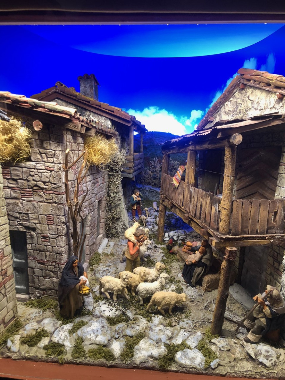 I suoi consigli sono stati utili anche a Maurizio Falsetti, i cui plastici sono esposti nella cripta della basilica di San Savino: ben 13 presepi che si differenziano per ambienti e luci, mettendo in evidenza l’evoluzione del suo stile nel corso del tempo. A fianco, ecco le statuine in argilla realizzate dalla scultrice Ada Tassi, avvolte da un effetto di penombra.