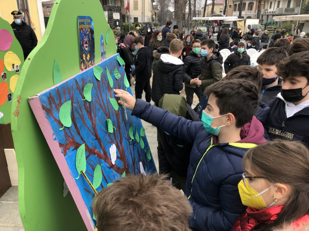 “La mafia fa schifo”, “ci accoglie, ma all’inferno”. “Voi che siete morti resterete nei nostri cuori” e ancora “non bisogna avere paura di denunciare”. Sono solo alcune delle decine e decine di pensieri che i ragazzi delle classi 5A della primaria di Quarto e della 1C, 1D e 1F delle medie di Gossolengo hanno appeso – su tanti cartoncini a forma di foglie – sull’albero “dell’impegno”. L’impegno è quello di dire sempre di no ad atteggiamenti mafiosi e di ricordare tutti coloro che sono morti – da innocenti – in attentati, uccisioni o regolamenti di conti perpetrati da Cosa Nostra e dalle altre associazioni mafiose. L’occasione è stata una grande mattinata di ricordo di queste vittima innocenti organizzata da Libera con l’Istituto Comprensivo di Rivergaro e Gossolengo e il Comune.