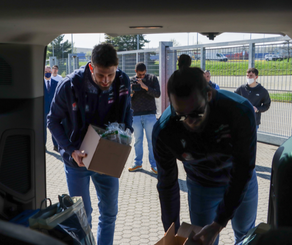 “Siamo molto sensibili a quello che sta succedendo e per questo ci fa piacere aiutare i nostri tifosi e con loro l’intero popolo ucraino” conferma Thibault Rossard, schiacciatore e numero nove della Gas Sales. Con lui e i rappresentanti dei lupi biancorossi – a caricare i furgoni con beni alimentari e aiuti umanitari – anche Antoine Brizard, Francesco Recine ed Enrico Cester.