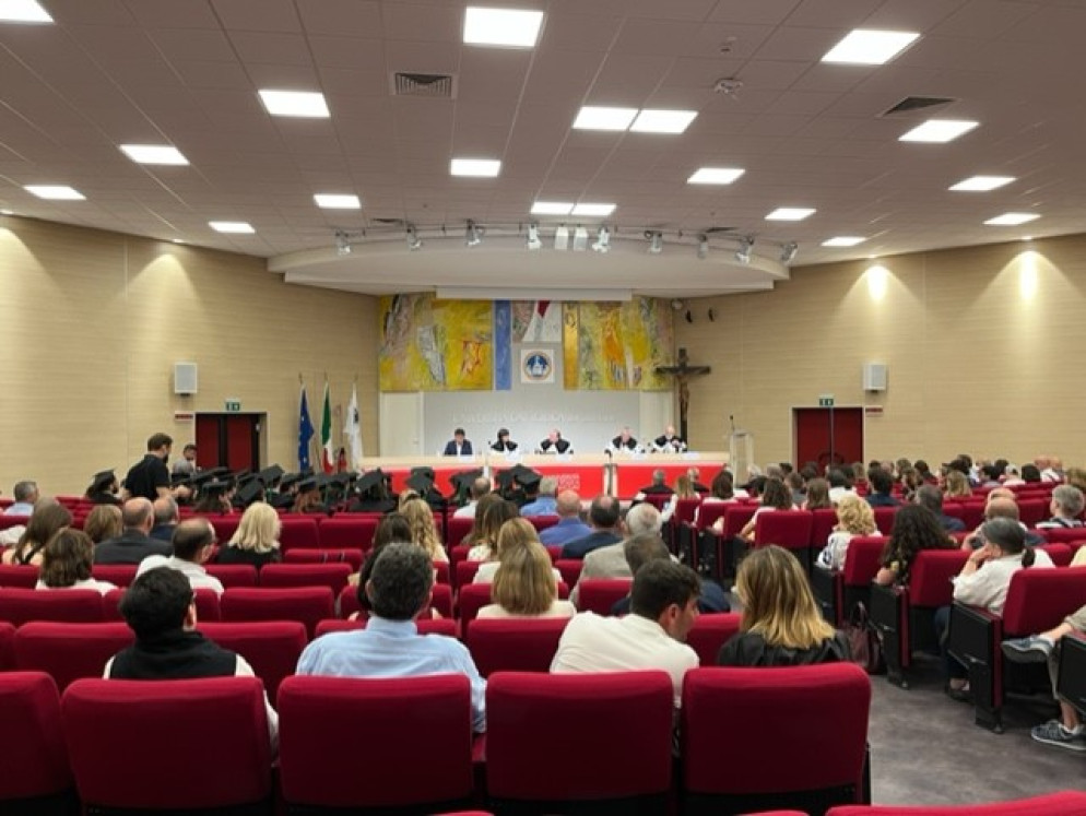 “Avete davanti a voi un mondo nuovo e complesso; sono sicuro avrete la competenza e la preparazione per affrontare tutte le difficoltà che incontrerete” l’augurio del Magnifico rettore dell’Università cattolica Franco Anelli. “La nostra generazione – ha proseguito il Magnifico rettore – è stata abituata ad assistere a problematiche legate alla sovrapproduzione, da adesso sarà il contrario: il vero problema è legato alla mancanza di materie prime e al conseguente aumento dei prezzi, per questo servirà mettere in gioco idee, progetti e nuove soluzioni.