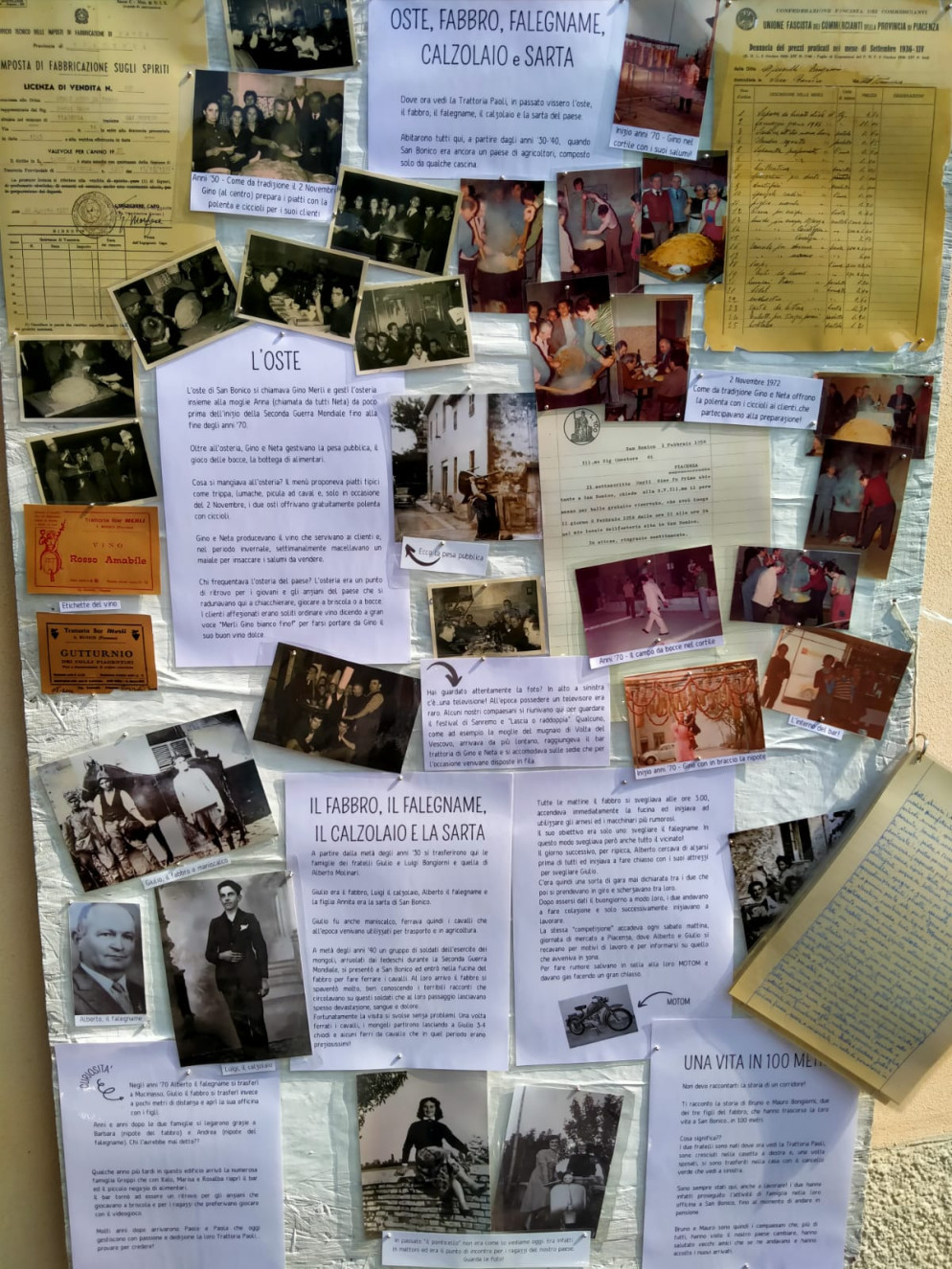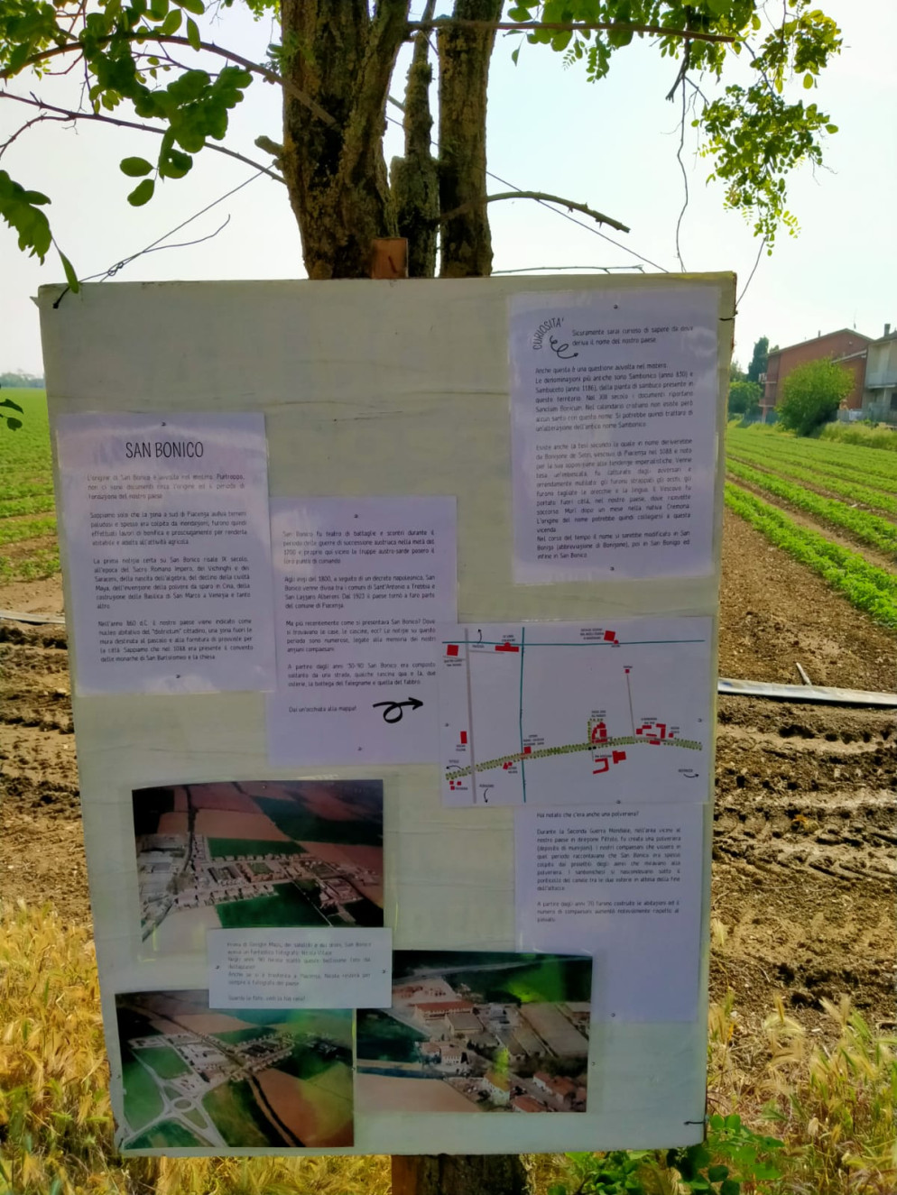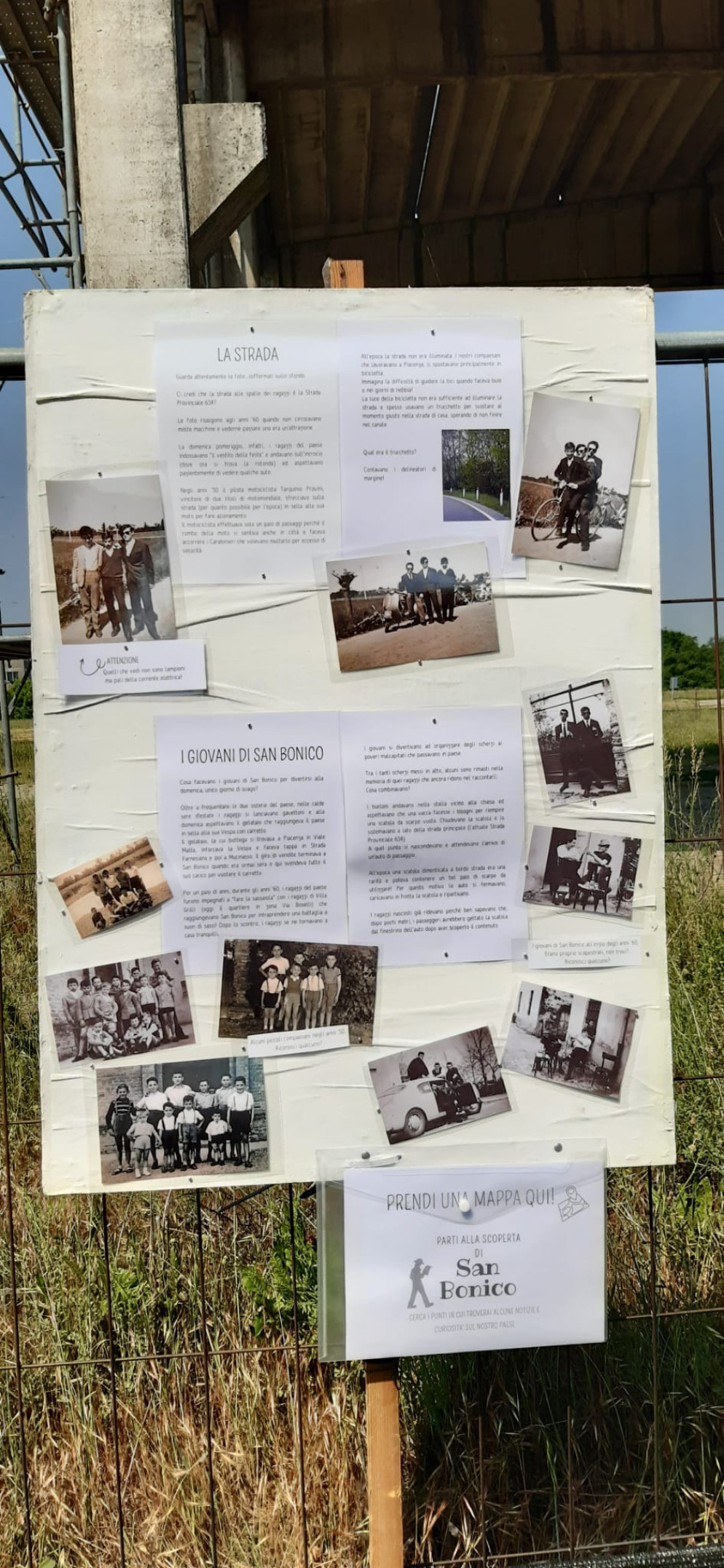La storia della frazione piacentina di San Bonico, dagli anni Trenta ad oggi, con qualche cenno all’antichità. A raccontarla, attraverso undici pannelli dislocati in vari punti del paese, sono Elisa Bongiorni, Gaia Gualla ed Elena Botti. Le 30enni, consigliere del circolo Anspi, sono particolarmente legate alle proprie radici tanto da volerle divulgare ai concittadini e a chiunque possa essere interessato a riscoprire tradizioni e personaggi del passato. L’iniziativa ha riscosso grande curiosità tra gli abitanti ma anche tra i ciclisti che affollano la zona nei fine settimana.