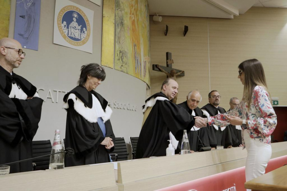 Alla presenza di Franco Anelli, Rettore dell’Università Cattolica, la commissione di laurea è stata presieduta dalla preside della facoltà di Economia e Giurisprudenza Anna Maria Fellegara.