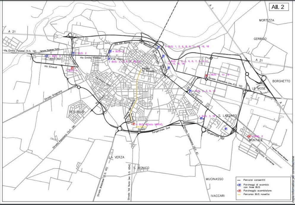 Val Nure e largo Anguissola), via Motti, via Martiri della Resistenza (tra via Motti e