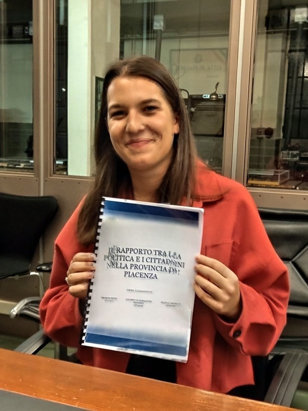 Si chiama “Il rapporto tra la politica e i cittadini nella provincia di Piacenza” ed è un report che fotografa uno spaccato del complicato rapporto tra i piacentini e il mondo della politica. A stilarlo sono stati una 24enne di Castel San Giovanni, Amanda Berni, insieme a due compagni di università: Eugenio De Benedittis e Nicola Garibaldi. L’idea è nata a Castel San Giovanni, dopo che Amanda ha partecipato ad un convegno che era stato organizzato al teatro Verdi in tema i giovani e la politica. “L’ho trovato molto interessante e, una volta concluso, ho pensato che sarebbe stato interessante strutturare un questionario da sottoporre a un campione di persone per testare il loro interesse circa verso la politica”. La giovane ha quindi contattato i compagni di università, tutti e tre iscritti al corso 5+1 della Cattolica (due lauree in sei anni di studio intensivo) e insieme hanno messo a punto un questionario che hanno distribuito on line. Il campione, 203 persone, va dai 14 ai 100 anni. Tra gli adolescenti il disinteresse per la politica cresce a dismisura. Il mezzo maggiormente usato da chi invece si informa è internet.