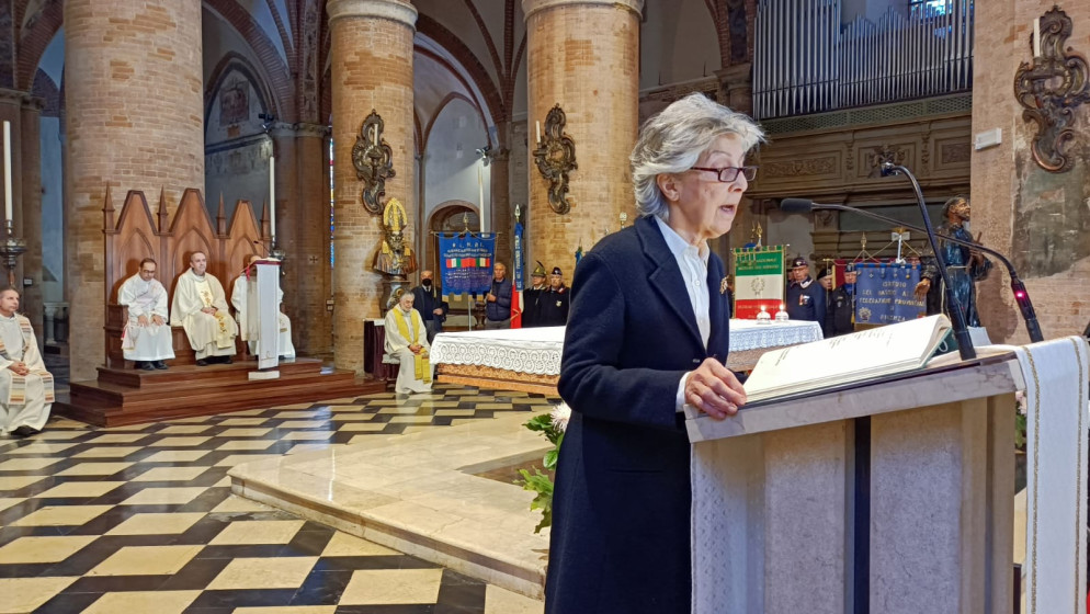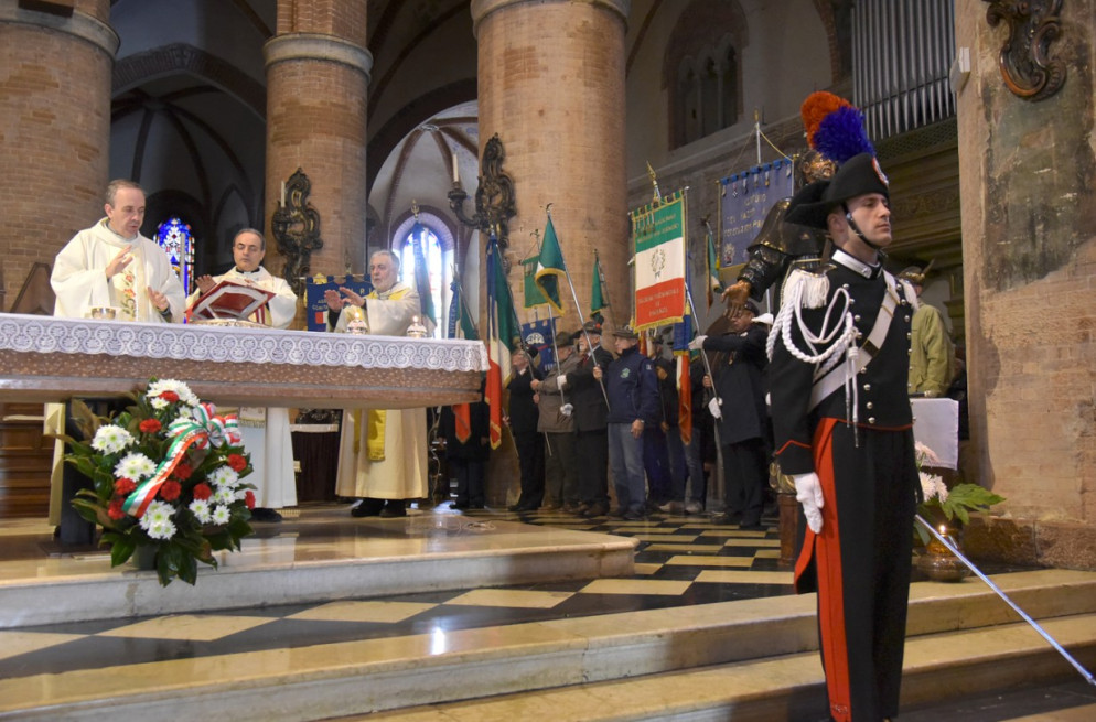 Sentiamo oggi più che mai la responsabilità e il dovere, morale e civile, di raccogliere e fare nostre queste parole, consegnando all’ufficialità di questa cerimonia – e in particolare a bambini e ragazzi, perché possano condividere la riflessione sulla ricorrenza odierna e sentirsene pienamente coinvolti – il valore del ricordo e della gratitudine. Nelle uniformi che vediamo presenti in piazza, nella partecipazione della gente, nella consapevolezza di una comunità che in questi giorni onora i suoi Caduti con sincera commozione, c’è un senso di appartenenza che conforta, rinsaldando gli ideali che in questa solenne circostanza onoriamo.