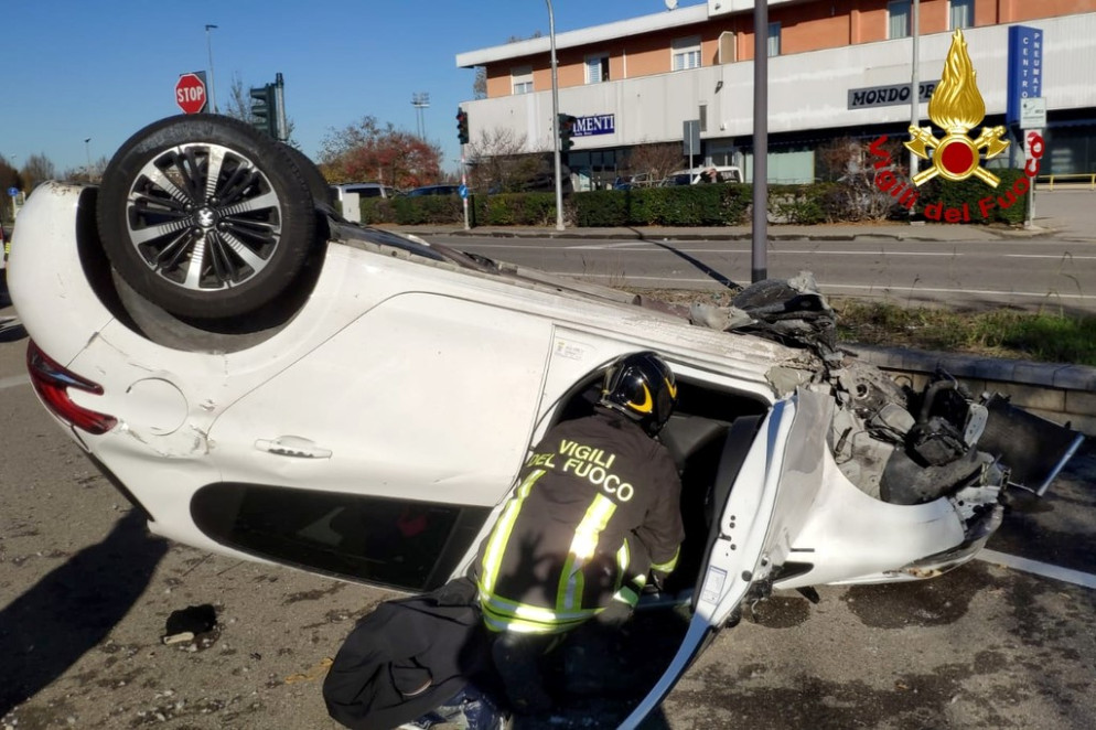 Perde il controllo della propria auto, esce dalla careggiata e si ribalta nel parcheggio di fronte alla caserma dei vigili del fuoco di Piacenza, lungo la strada Val Nure. L’incidente è accaduto verso le 13.40 di oggi; Il conducente, prima di finire la propria corsa nell’area di sosta, ha impattato con la propria auto contro alcuni pali stradali e il new Jersey.