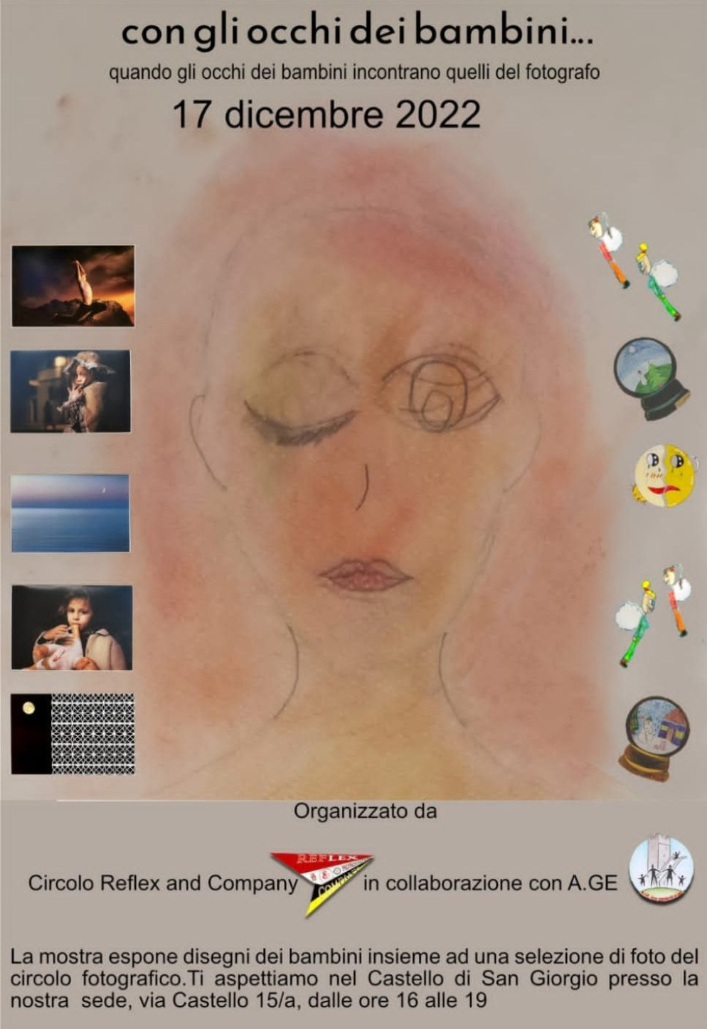 Nella giornata di domenica invece il circolo Reflex and Company – che riunisce decine di appassionati di fotografia – presenterà, nel castello di San Giorgio la mostra dal titolo “Con gli occhi dei bambini…” perchè quando gli occhi dei bambini incontrano quelli del fotografo nasce una magia traccontata attraverso foto e disegni. La mostra sarà aperta al pubblico dalle 16.00 alle 19.00.