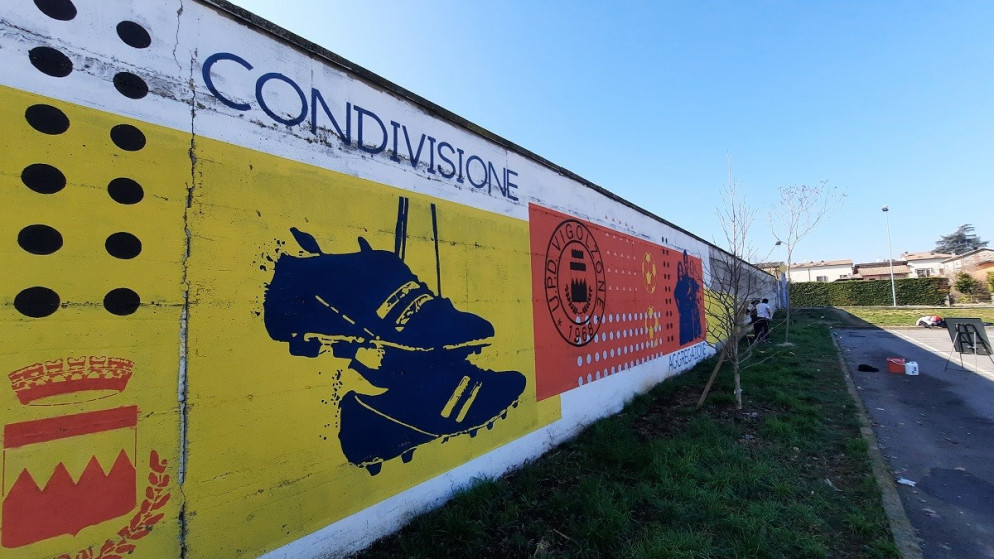 Un murale che parla del passato, del presente e del futuro di Vigolzone sta sorgendo in via Casalegno, a Vigolzone, sul muro che delimita il campo da calcio “Garatti”. Per tutti i 100 metri di lunghezza disegni e parole chiave delineano ciò che è Vigolzone, ciò che è stato e quello che ci si augura sarà. Sono gli studenti delle classi seconde e terze medie di Vigolzone i protagonisti di questa opera di street art che è frutto di un progetto promosso dall’amministrazione comunale, in particolare dal sindaco Gianluca Argellati e dall’assessore a cultura e pubblica istruzione, Lucia Serena, dal titolo “Vigolzone Paese e Comune”. Ieri mattina, 15 febbraio, gli studenti hanno frequentato le ore di arte all’aperto, dipingendo quel muro che da grigio sarà totalmente colorato. Il lavoro è iniziato nell’autunno, coordinato da Giulia Casana e Lucas Job Martins di “Unpodicolores” cui è stato affidato il progetto da parte del comune, e seguiti dall’insegnante di arte del plesso vigolzonese, Eleonora Serena. I temi affrontati sono quelli della tradizione, della storia, della condivisione, dell’aggregazione, già sviluppati e già visibili sul muro; le antiche casate, i mestieri, la convivialità ed il patrimonio artistico culturale che saranno scritti e disegnati nelle prossime settimane, con la tecnica dello stencil, per dare la possibilità a tutti di sentirsi coinvolti. Un lavoro che vedrà impegnati gli studenti per qualche settimana e che, come fissato negli obiettivi del progetto, è un vero e proprio momento di educazione civica, che insegnerà loro a considerare come “loro” il patrimonio pubblico.