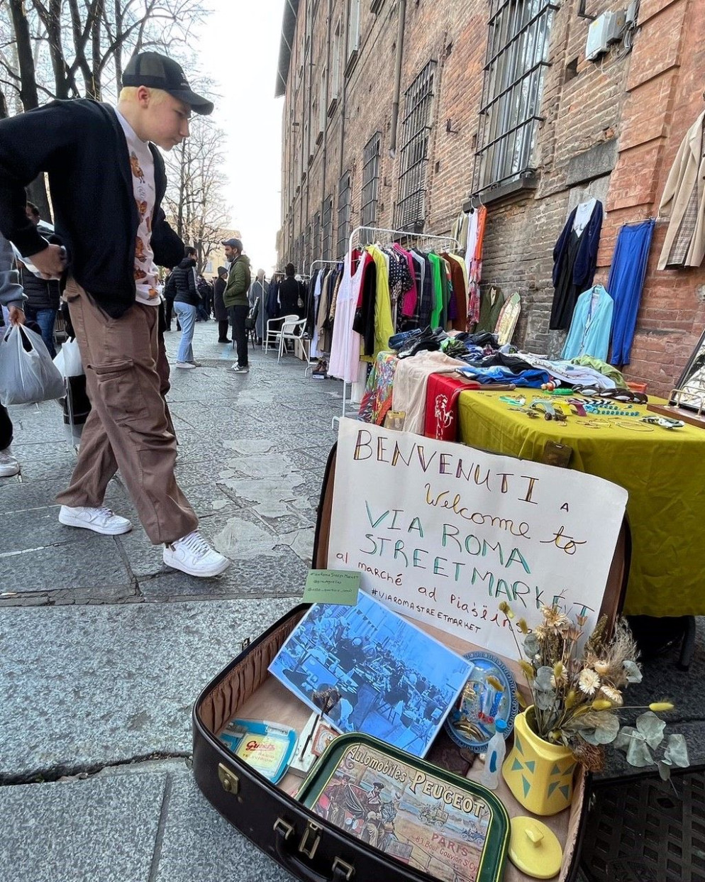 C’è chi – reduce dalla visione di Sanremo – ha pensato di far sbarcare il guardaroba simbolico di Chiara Ferragni in quartiere. Metaforicamente, s’intende. E così su un manichino è apparso un cartello bianco con la scritta: “Pensati in via Roma”. Tanti piacentini si sono pensati proprio lì, al Via Roma Street Market tornato oggi in grande stile dopo un paio di mesi di stop invernale. Tante le sorprese a partire da piazzetta Santa Maria coi produttori di miele e biscotti agli “agrumi dell’amicizia” di Africa Mission Cooperazione e Sviluppo presenti a Fabbrica & Nuvole.