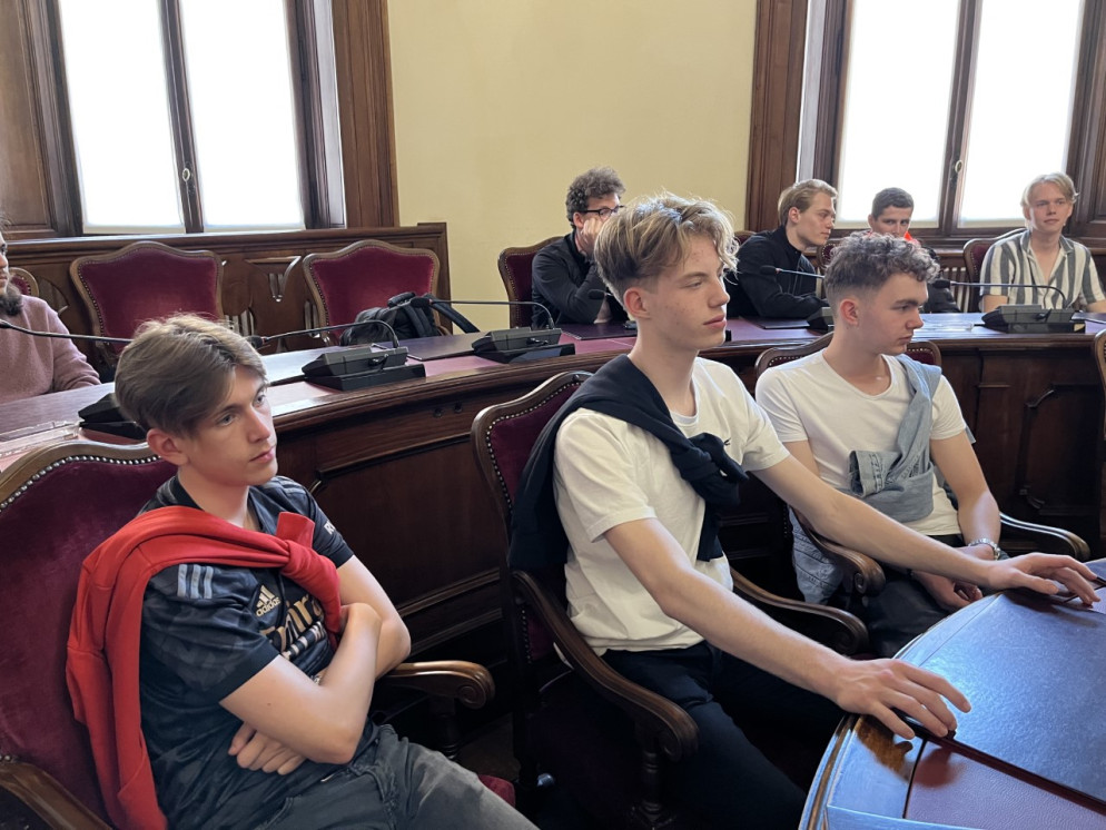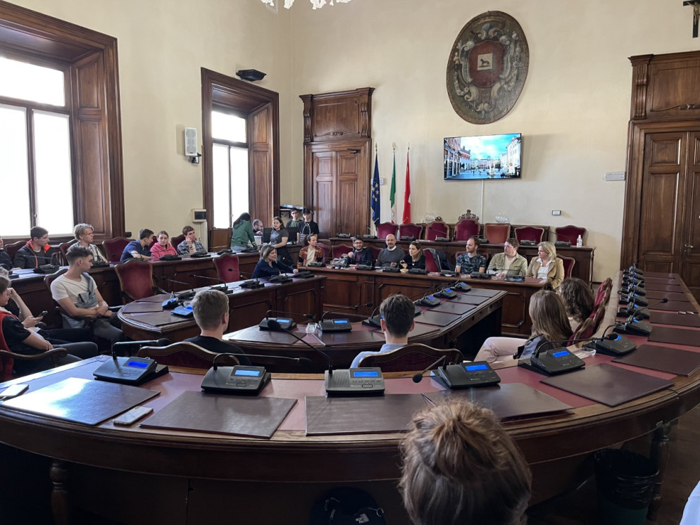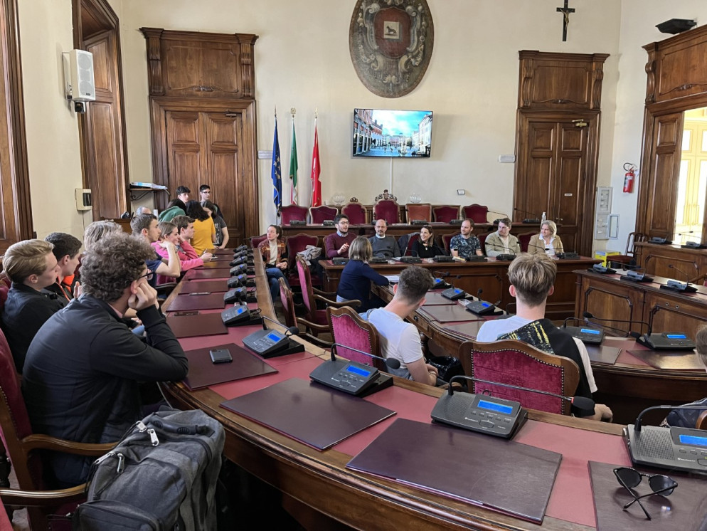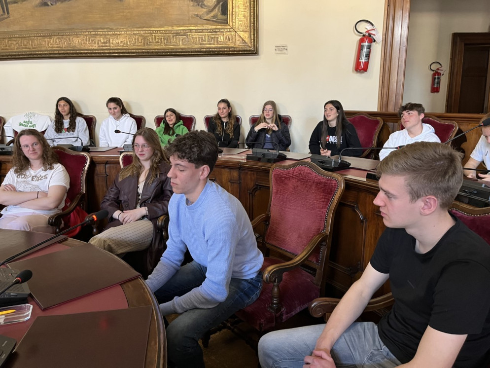 La delegazione di studenti, accompagnati dai loro professori e dalla preside Elisabetta Ghiretti è stata accolta a palazzo Mercanti il sindaco Katia Tarasconi, gli assessori Francesco Brianzi e Mario Dadati.