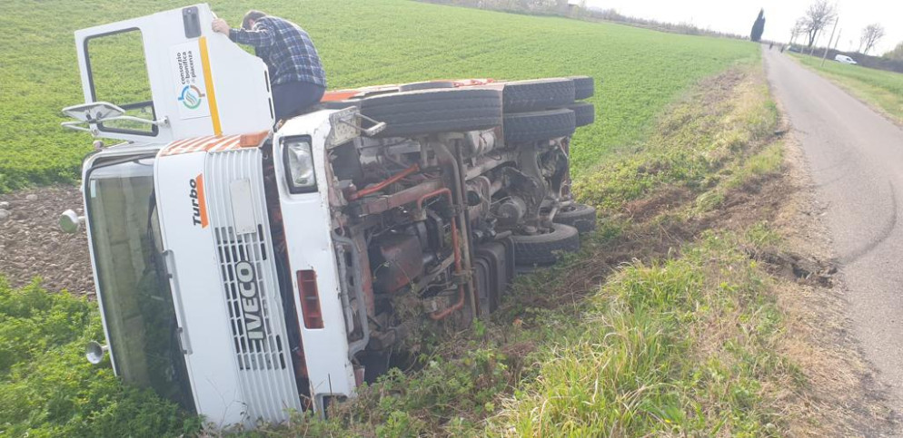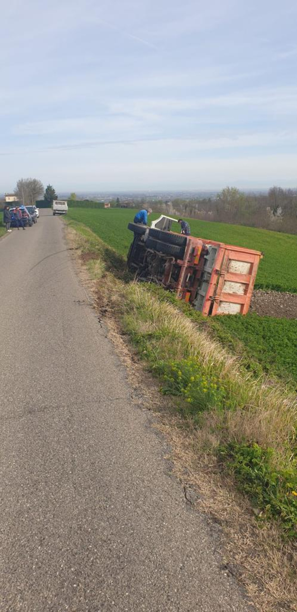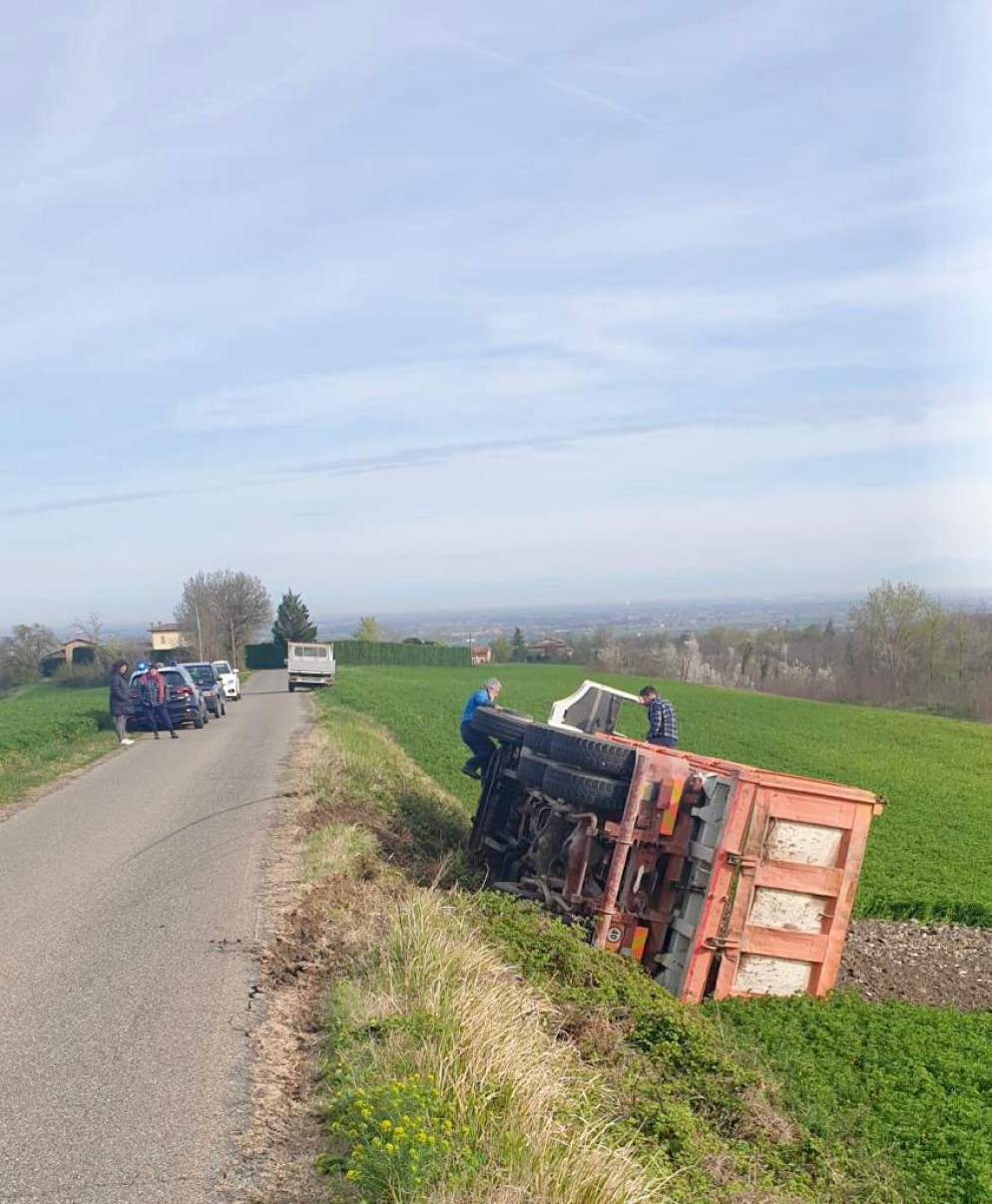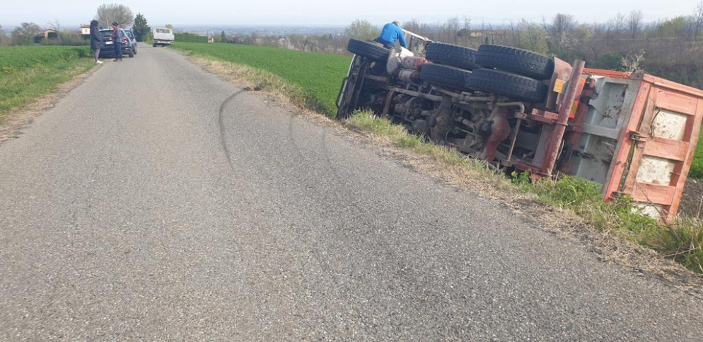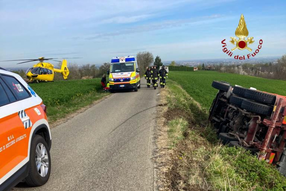 Castell'Arquato, autocarro si ribalta. Grave il conducente, interviene l'elisoccorso