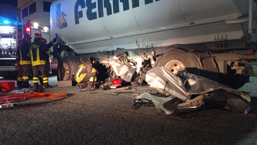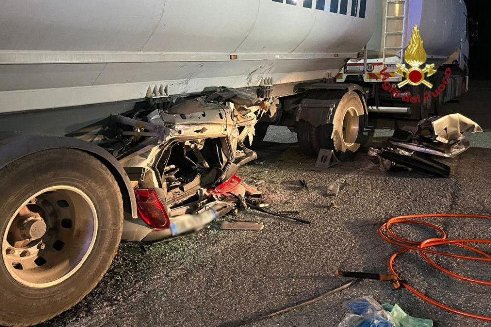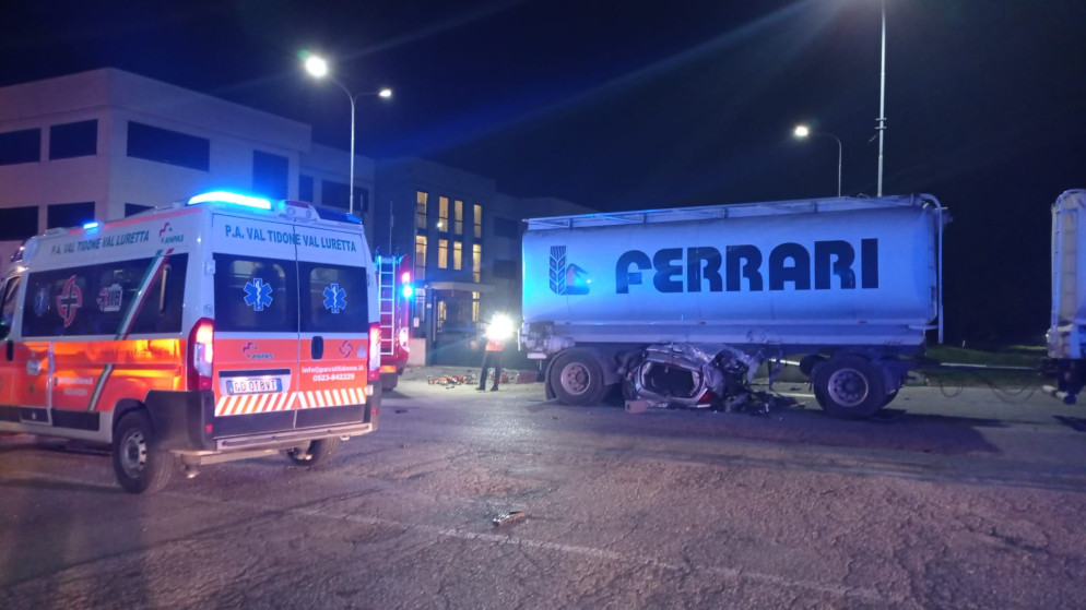 Si macchiano ancora di sangue le strade piacentine: poco prima di mezzanotte un’auto che viaggiava lungo la via Emilia tra Castel San Giovanni e Sarmato uscita di strada ed è finita nel piazzale della Ferrari Mangimi, finendo la propria corsa sotto la cisterna di un camion posteggiato.