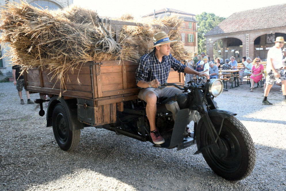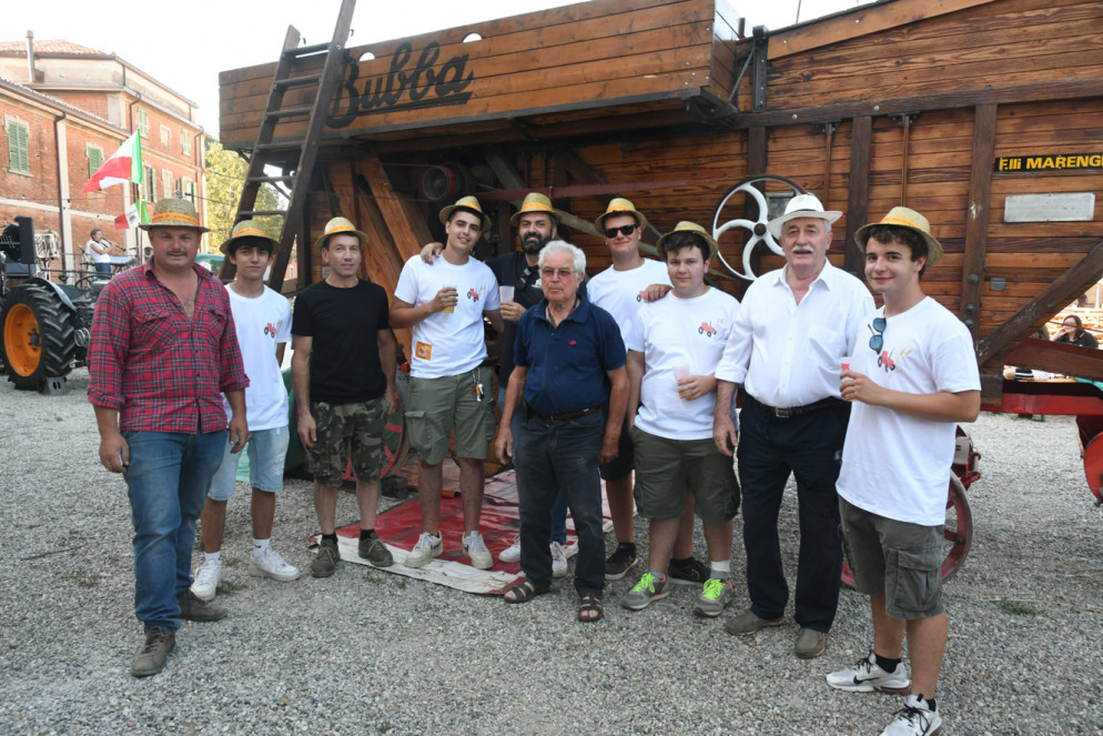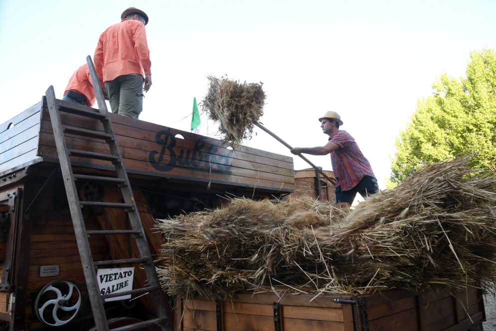 Quei covoni sono stati portati alla Faggiola e poi mietuti dalla Bubba. Una decina i mezzi agricoli storici in esposizione nella corte ed altrettanti quelli di ultima generazione.