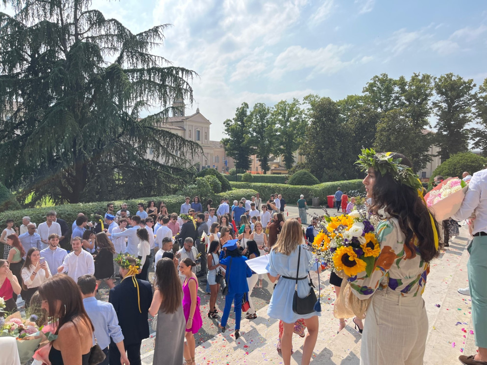 I primi laureati al corso di Management per la sostenibilità sono Sara Balliu, Simone Biancardi, Giulia Ferrari Agradi, Bernardo Mori, Emanuele Patti, Francesca Rossi, Clarissa Testori e Viola Ferrari che uscendo dal centro congressi Mazzocchi con la corona in testa ha commentato: “Bisogna prendersi cura anche delle piccole cose, abbiamo il mondo in mano ed è assolutamente necessario costruire un futuro più sostenibile dal punto di vista economico, ambientale e sociale”.