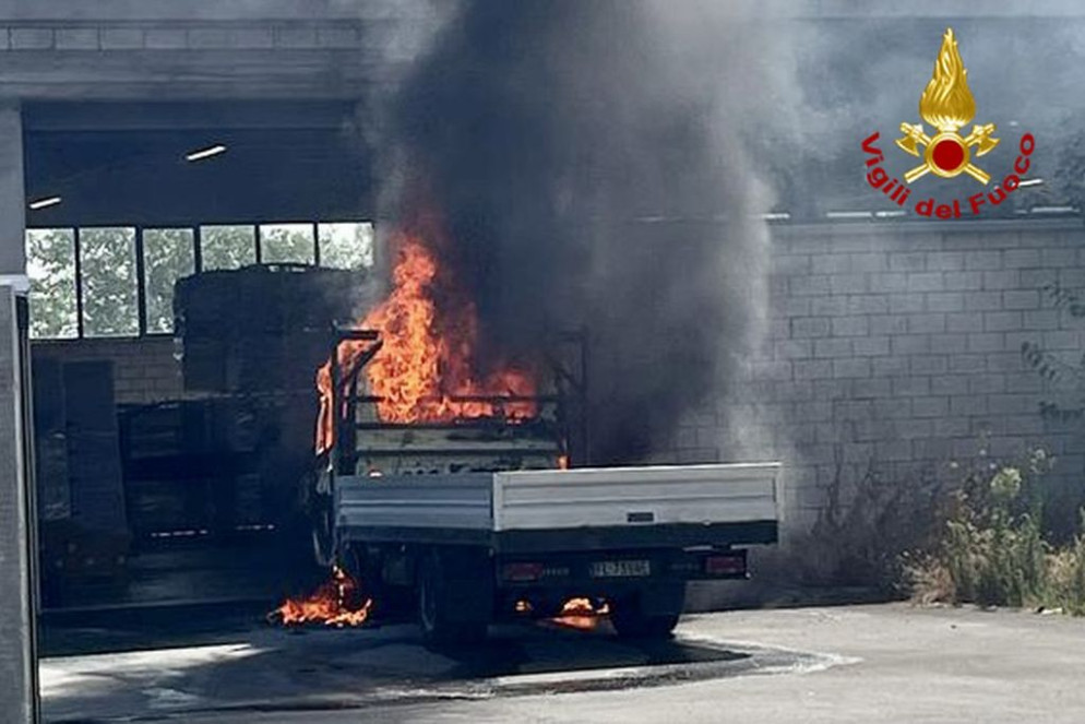 Furgone in fiamme all'esterno di una ditta: rogo domato dai vigili del fuoco