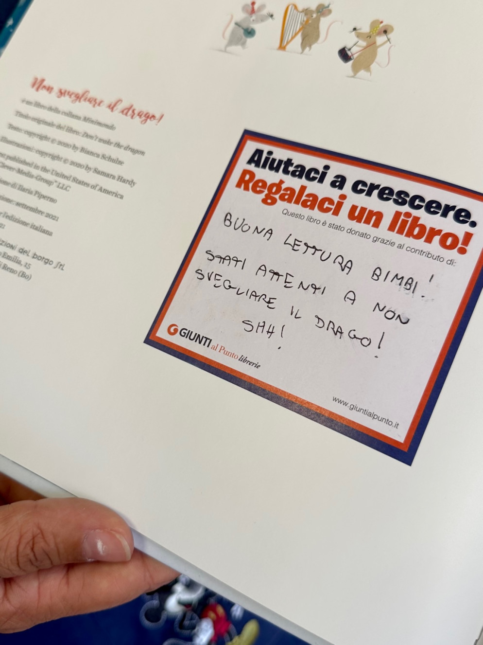 Laura Paini, di Librerie Giunti al Punto, ha precisato: “La grande generosità dei nostri clienti è il dato più bello. Si ha la sensazione, grazie a iniziative simili, di riuscire a unire la città. Noi, non essendo da tanto tempo sul territorio, stiamo provando a farlo. C’è una cosa che ci ha colpito di questa campagna: la varietà dei titoli scelti. Alcuni clienti adulti hanno cercato i racconti e le favole che riempivano le loro ore quando erano piccini, altri si sono affidati ai bambini medesimi, che hanno donato un libro – con tanto di dedica – ai loro coetanei. Si è riusciti dunque a raggiungere, con questi libri, bambini di età diverse e con interessi diversi. Non ci sono quindi solo i classici, ma anche i fumetti, i libri da colorare e le storie dei campioni sportivi”.