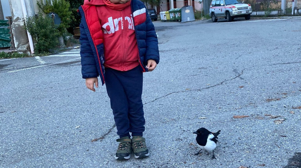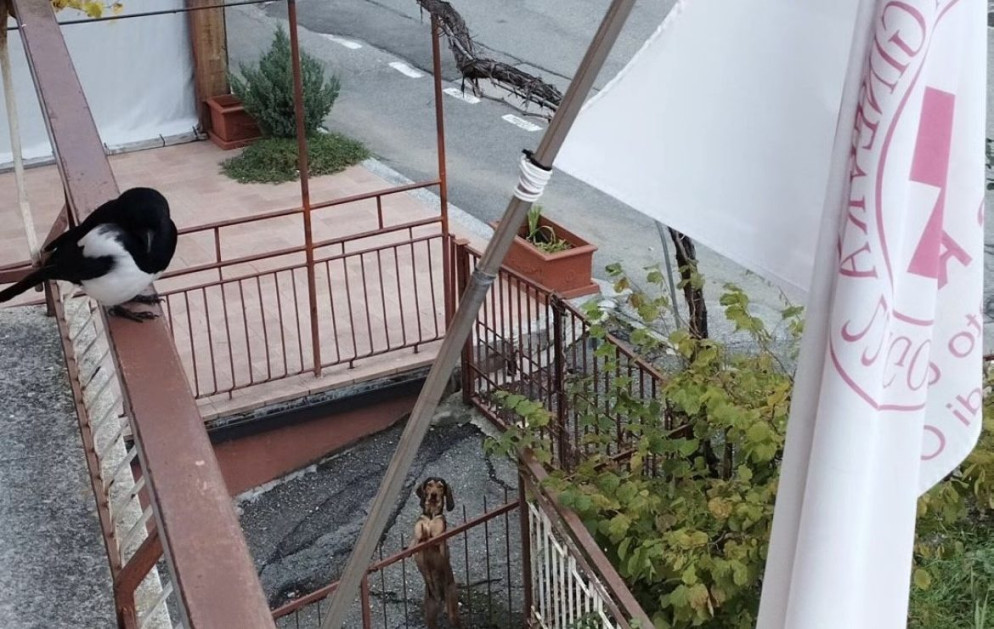 La gazza Berta ospite fissa della piazza di Ottone tra selfie e luccichii attraenti