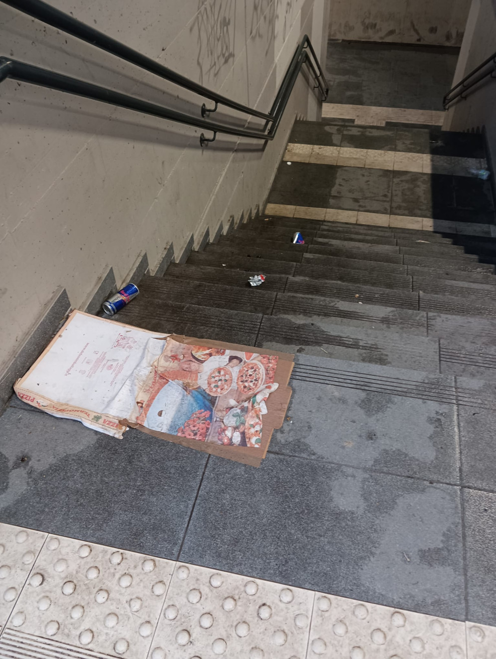 “Qui – racconta una residente – è un continuo accumularsi di avanzi di cibo, cartoni di pizze, lattine, bottiglie vuote che vengono lasciati sulle scale, o sulla rampa, del sottopasso dove gruppi di giovani bivaccano a loro piacimento, soprattutto la sera”.