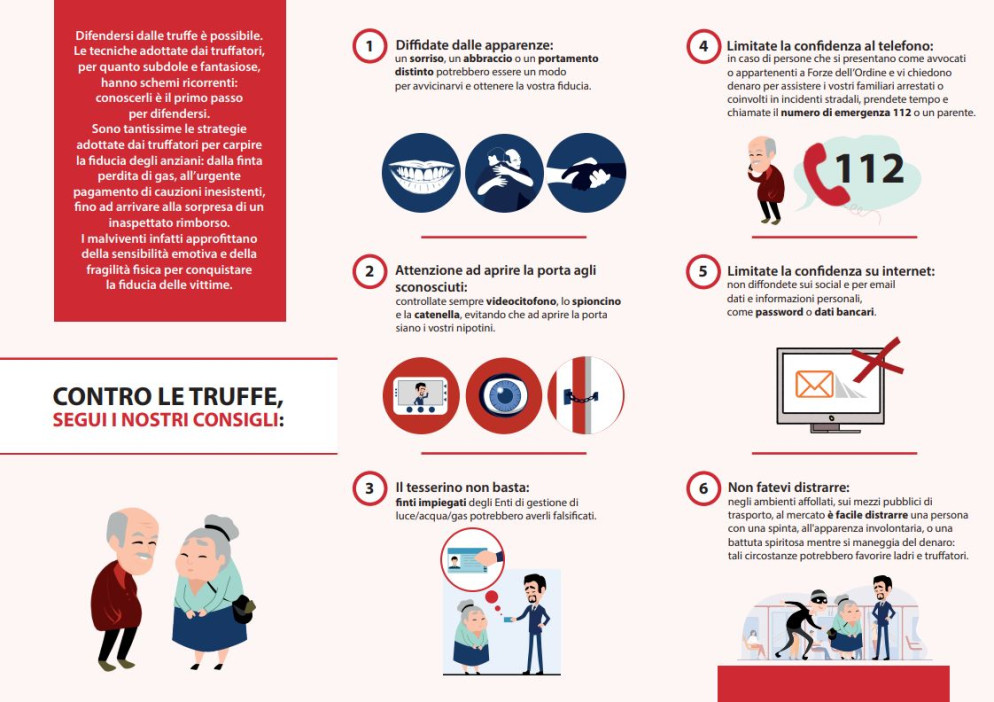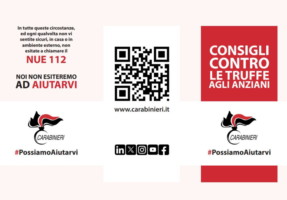 Sono alcuni dei consigli che l’Arma dei Carabinieri rivolge alle persone più vulnerabili, in questo caso gli anziani, per contrastare l’odioso fenomeno delle truffe nei loro confronti.