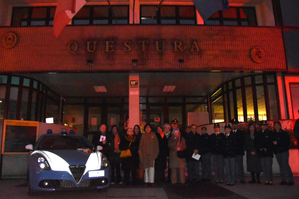 "No alla violenza sulle donne": caserma e questura illuminate di arancione
