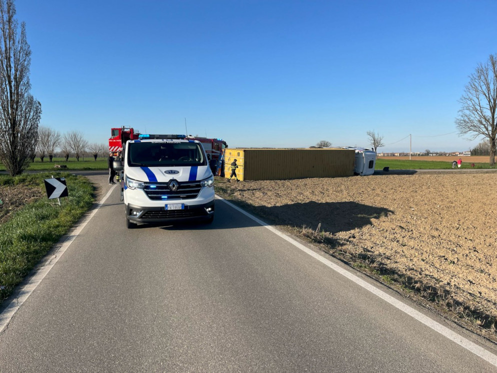 Un tir si è ribaltato su un fianco lungo strada Rio Chiappone, nel territorio del comune di Piacenza, nel pomeriggio di mercoledì 19 marzo. Affrontando una curva la ruota anteriore del camion è uscita dalla carreggiata sbilanciando il mezzo che si è coricato nel campo a lato della strada.
