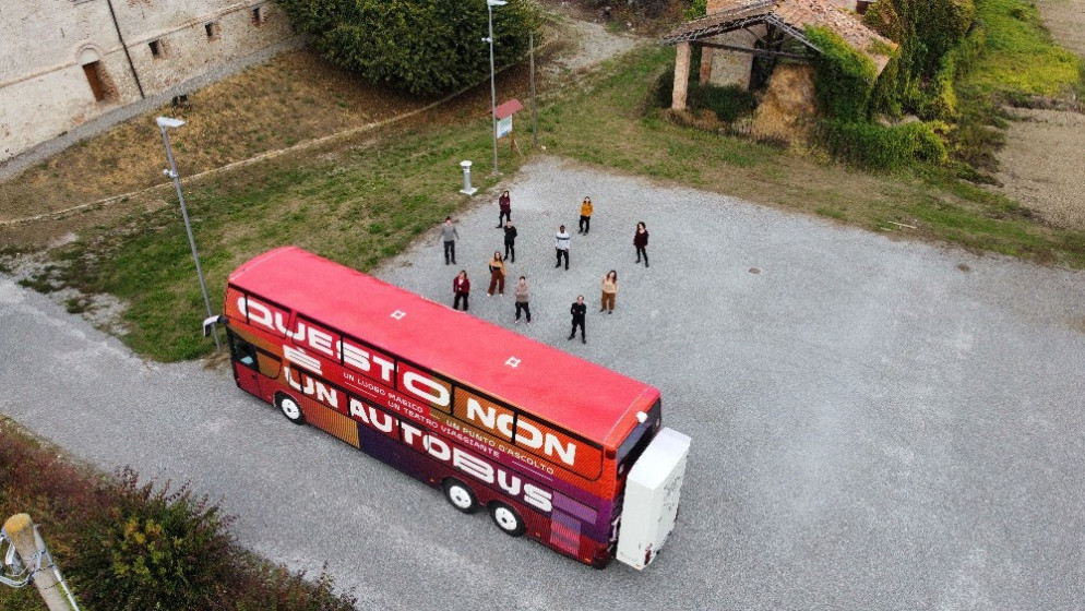 Questo non è un autobus, ma un teatro viaggiante che sta percorrendo le strade dello stivale per lanciare messaggi contro la violenza di genere. Stiamo parlando di un pullman a due piani, riallestito e progettato meccanicamente per trasformarsi in teatro su ruote, ma soprattutto in punto d’ascolto e presidio culturale itinerante.