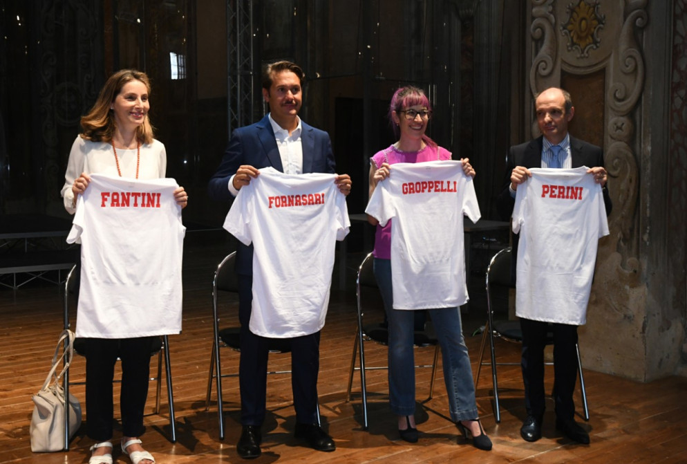 PRESENTAZIONE IN GRANDE STILE – Uno show all’americana quello organizzato oggi per annunciare la squadra: il salone pieno di politici ed esponenti della società civile, luci puntate sul palcoscenico e il primo cittadino “conduttore” dell’evento con il microfono in mano. Durante la lettura dei nomi, manca solo il rullo di tamburi. Qualcuno – tra sorrisi ed emozione – scopre le deleghe precise sul momento. Poi il gran finale: a ogni neoassessore viene consegnata una maglia con il proprio nome e il logo del Comune, “senza numeri o segni di appartenenza politica – evidenzia Tarasconi – perché si lavorerà verso un unico obiettivo”.