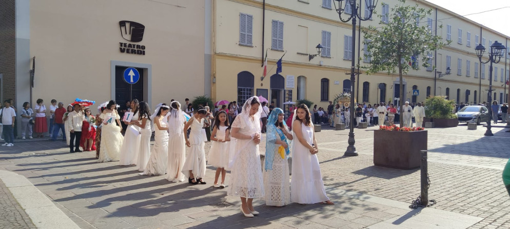 La comunità filippina si è data convegno a Castelsangiovanni per celebrare Flores de Majo. Per l'occasione una processione al seguito di una corona di fiori bianchi con al centro la scritta Reina Elena, regina Elena, ha sfilato lungo le vie del centro storico.