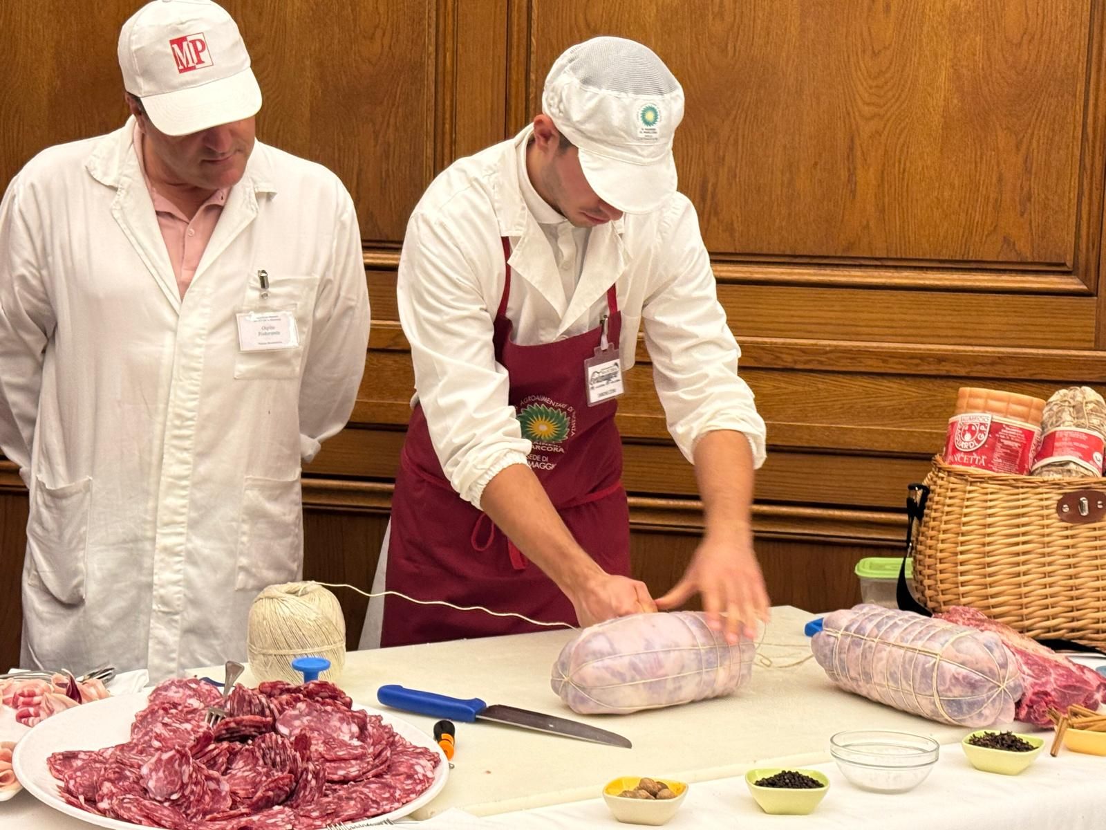 Gli studenti degli istituti professionali Raineri Marcora di Cortemaggiore e Piacenza hanno portato l’eccellenza gastronomica piacentina alla Camera dei Deputati. Insieme a Fabrizio Mazzoni — maestro norcino e docente del corso di lavorazione della carni suine a Cortemaggiore — i ragazzi hanno mostrato dal vivo le tecniche di legatura dei tre salumi Dop piacentini, coppa, salame e pancetta, proponendo un assaggio guidato abbinato ai vini del territorio, tra cui Gutturnio fermo e frizzante e Malvasia di Candia aromatica.