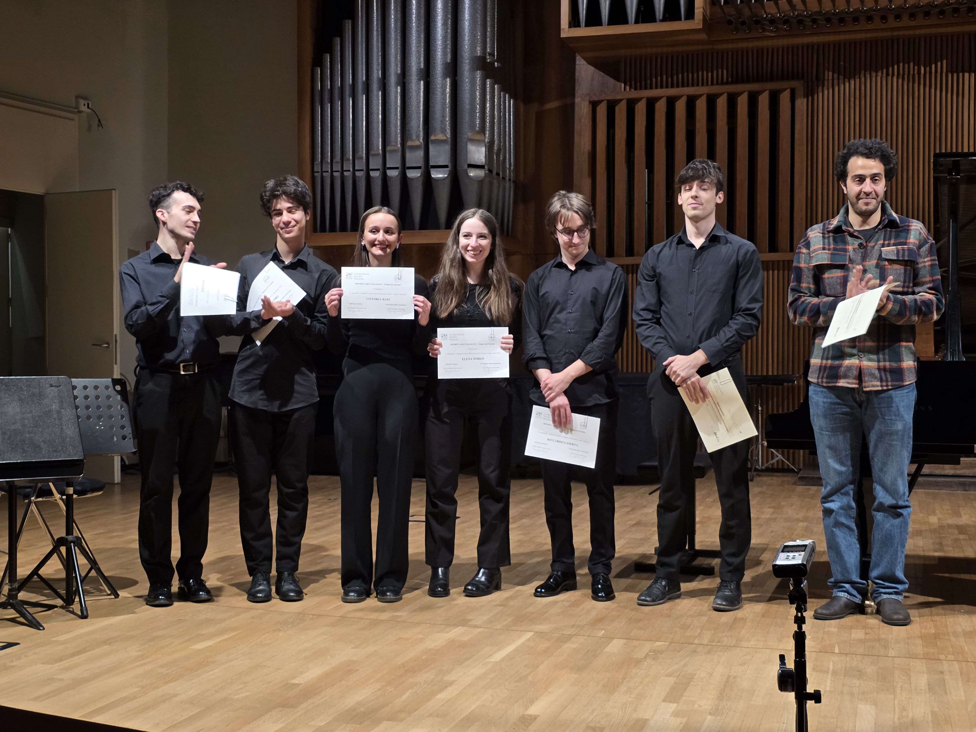 Infine, la Categoria 4, dedicata al jazz, alle percussioni, alla composizione e ai nuovi linguaggi, ha visto un ex aequo tra Seyed Ali Hosseini, studente di musica applicata, e Isacco Marchesi, percussionista. Il primo ha presentato Delirium, un lavoro audiovisivo che rilegge due danze di Alice Guy-Blaché in chiave contemporanea; il secondo ha proposto con sensibilità la Suite in Mi minore BWV 996 di Bach nella trascrizione per marimba.