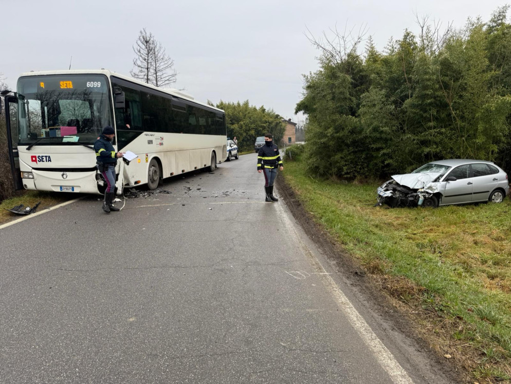 Incidente nel pomeriggio di lunedì 20 gennaio. A Ponte Riglio, nel comune di Pontenure, intorno alle 14.30, si è verificato uno scontro tra un’auto e un bus di linea di Seta.