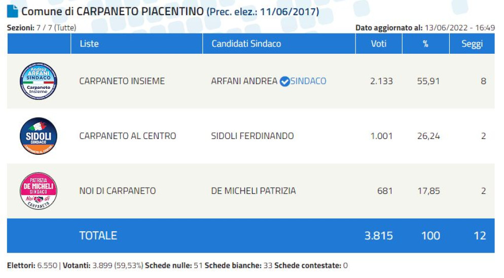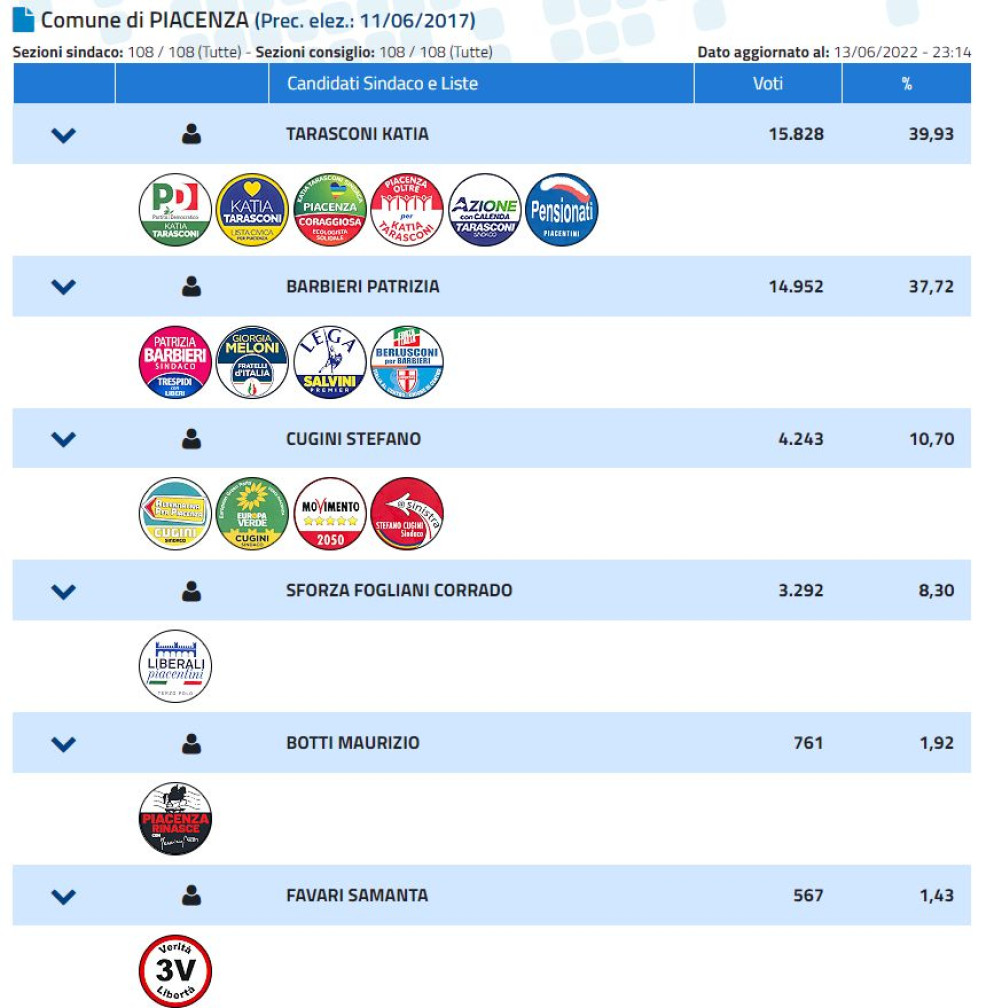 E terminato verso le 23.15 lo spoglio dei voti per le amministrative a Piacenza e nei quattro comuni della provincia: Bettola, Carpaneto, Monticelli, Villanova.
