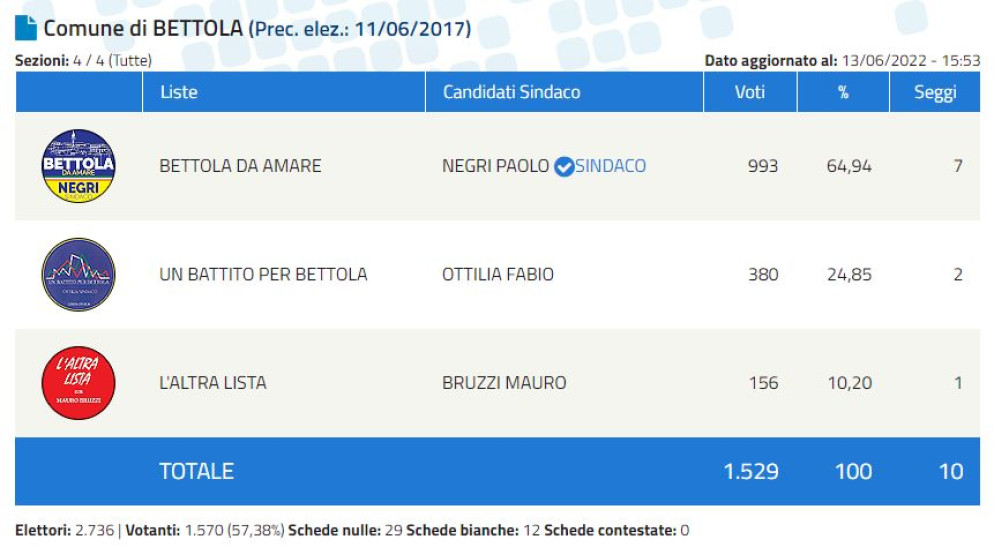 Sindaco eletto : Paolo Negri