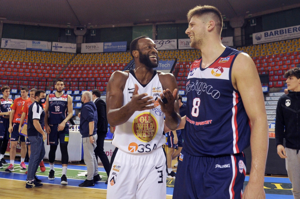 LA CRONACA – McDuffie su invito di Molinaro replica ad Italiano, quindi Cesana segna 4 punti consecutivi per il 6-5 Assigeco al 3’. Udine però è molto aggressiva in difesa e l’accopiata Johnson-Foulland mette 7 punti consecutivi, interrotti dalla tripla di Capitan Formenti: 12-9 al 5’ per i padroni di casa. Johnson è in grande serata e in 7’ è già a quota 10 punti, ma fortunatamente per l’Assigeco McDuffie segna dalla lunga distanza e tiene i biancorossoblu a contatto (22-17). La sesta tripla per Udine nel primo periodo la segna Giuri e sul 30-20 del 9’ arriva il timeout Assigeco. Il secondo quarto inizia ancora nel segno di Johnson, cui replica Guariglia in una gara velocissima nel suo svolgimento. I padroni di casa non sbagliano veramente mai e l’Assigeco cerca di stare a galla con due punti ancora di Guariglia (38-27), ma Foulland lo imita e le palle perse di Piacenza agevolano Udine fino al 40-27 di metà periodo. L’Assigeco però c’è: Gajic mette una tripla, McDuffie segna due liberi e i biancorossoblu tornano a -7 a cavallo dell’intervallo lungo. Al rientro dagli spogliatoi Carberry prova a dare la scossa con 7 punti consecutivi, quindi Cesana riporta l’Assigeco a -5 (56-51). Molinaro segna un libero (59-55 al 25’), poi McDuffie cancella Deangeli e Carberry segna ancora in contropiede riaprendo definitivamente i giochi. La partita diventa bellissima: McDuffie segna dalla lunga con il fallo di Giuri, ma sbaglia il libero del pari e Antonutti è cinico nel segnare 4 punti che costringono Salieri al timeout sul 70-63 del 28’. Italiano inaugura il quarto finale con la tripla, Carberry lo imita, ma Mussini anche, prima che la magia di Massone rimetta ancora le cose sul 76-70. Johnson segna ancora da lontanissimo e fa calare i titoli di coda sul match.