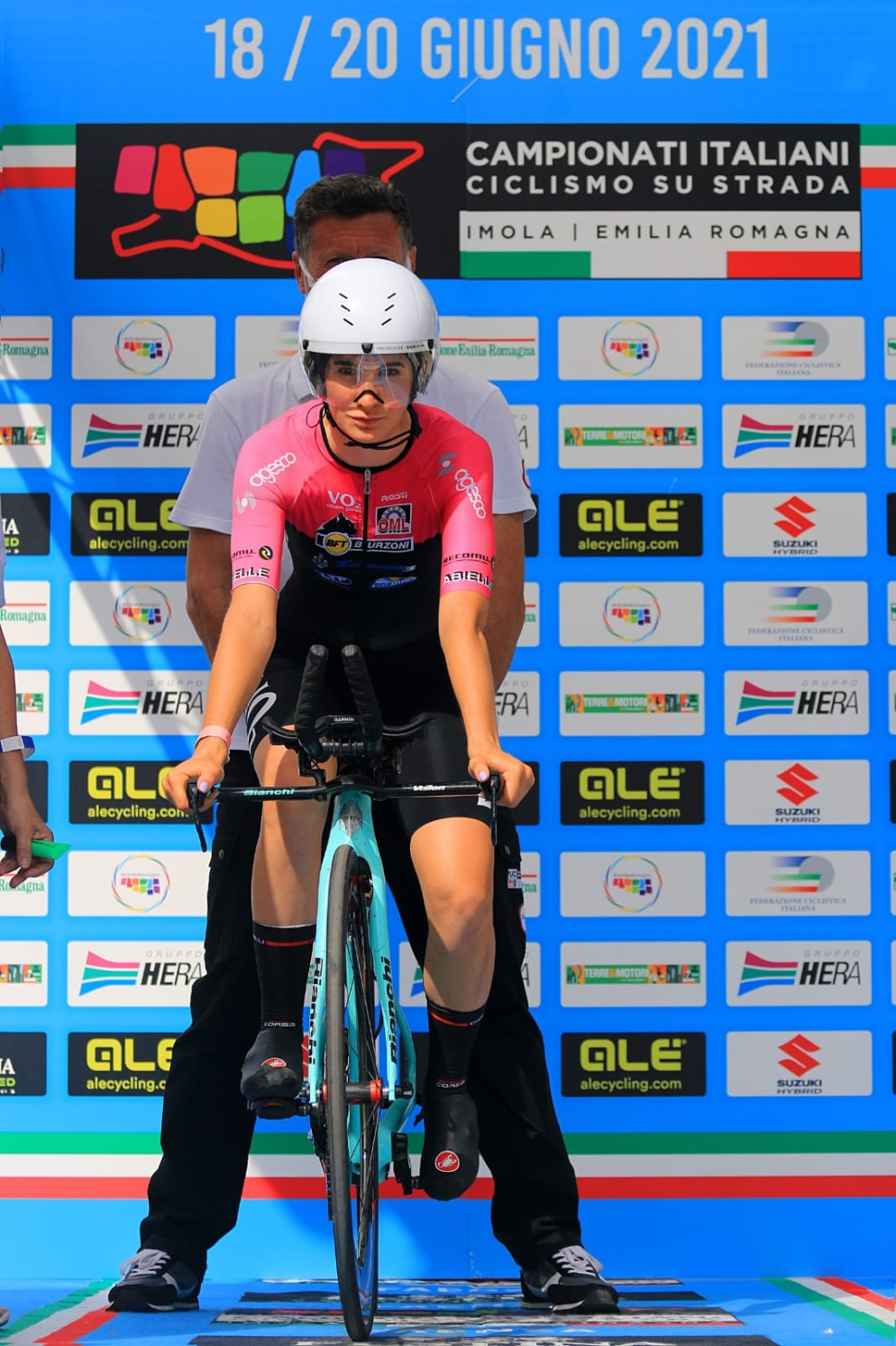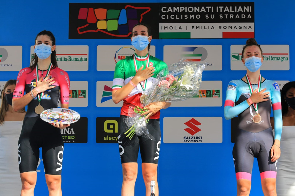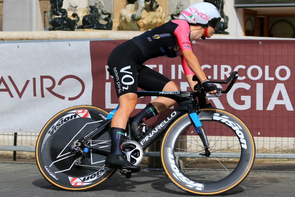 Stefano Peiretti (direttore sportivo Donne Juniores e Donne Elite VO2 Team Pink): “E’ davvero una giornata stupenda, dove spicca il bellissimo tricolore di Francesca (Barale) ma che si è giocato sul filo dei centesima con Carlotta (Cipressi). E’ un risultato condiviso, oggi abbiamo dominato la corsa, contando che anche Martina Sanfilippo ha disputato una bellissima cronometro: peccato solo un errore tecnico che ha fatto perdere secondi decisivi per salire sul podio. E’ stato un trionfo-VO2 Team Pink, anche Chiara Sacchi e Silvia Bortolotti hanno offerto una bellissima prestazione. Ci tengo a sottolineare l’ottima prova delle nostre due Elite Cristina Tonetti ed Elisa Tonelli: in un lotto di partenti di primissimo livello hanno saputo terminare una cronometro durissima gestendola ottimamente da atlete serie quali sono. Dedichiamo questo tricolore a tutti i nostri sponsor che in un momento di difficoltà come quello che stiamo vivendo non ci fanno mancare il loro sostegno e permettono alle nostre ragazze di inseguire il loro sogno”.