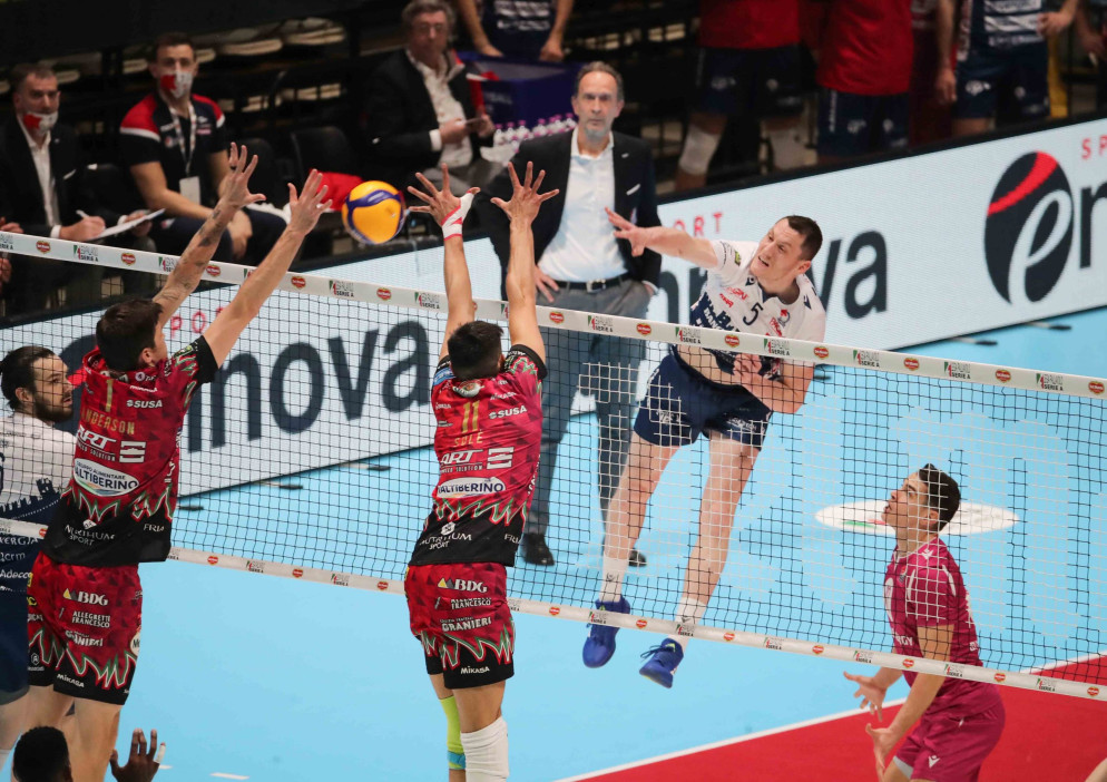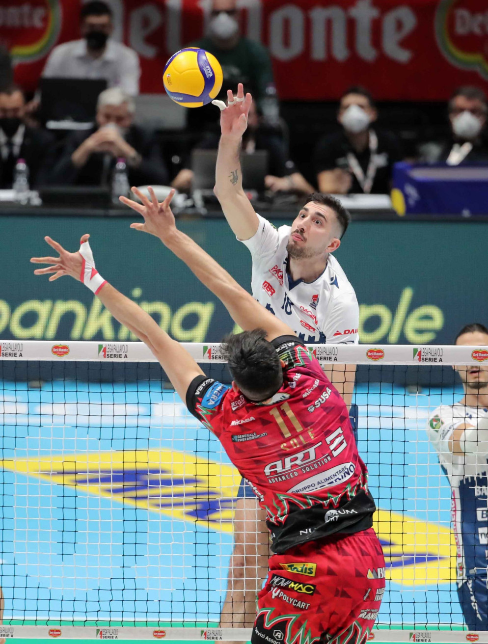 La squadra di Bernardi, reduce da un momento non facile in campionato, è stata brava a non disunirsi e dopo aver perso il primo set 25-22 è tornata prepotentemente in corsa grazie ad un meraviglioso secondo parziale, che i biancorossi hanno chiuso 23-25. Ago della bilancia della partita è stato il terzo periodo, dove il sostanziale equilibrio è stato spezzato da una impressionante serie a servizio di Leon, i cui attacchi sono valsi il 25-23 per gli umbri. Nel finale, dopo un sostanziale equilibrio, qualche errore di troppo di Piacenza ha spianato la strada ai ragazzi di Grbic, che hanno archiviato la pratica 25-18.