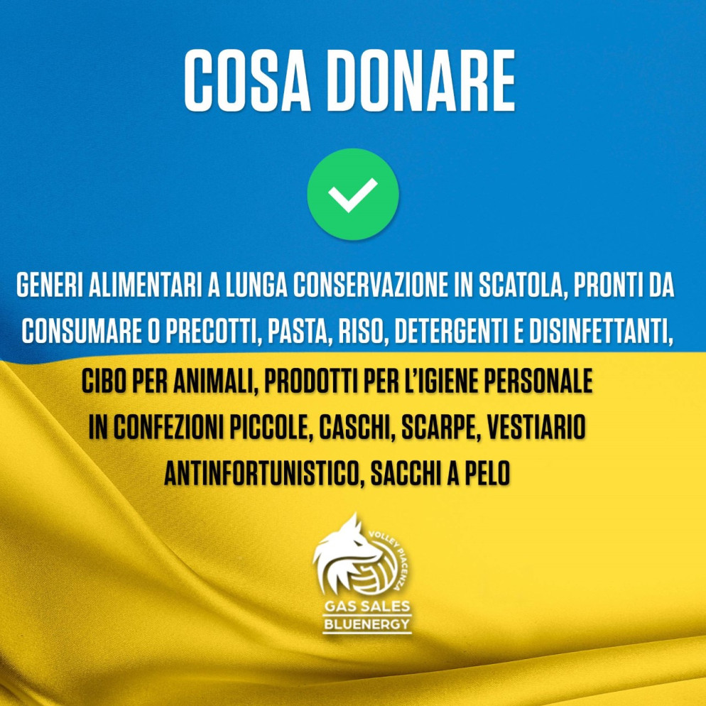 “Siamo a fianco di chi soffre a causa del conflitto tra Ucraina e Russia. Ci siamo resi disponibili ad accogliere presso il PalabancaSport i generi che arriveranno perché desideriamo che questo sia un luogo di pace e di solidarietà” le parole di Elisabetta Curti, presidente della Gas Sales Bluenergy Volley Piacenza.