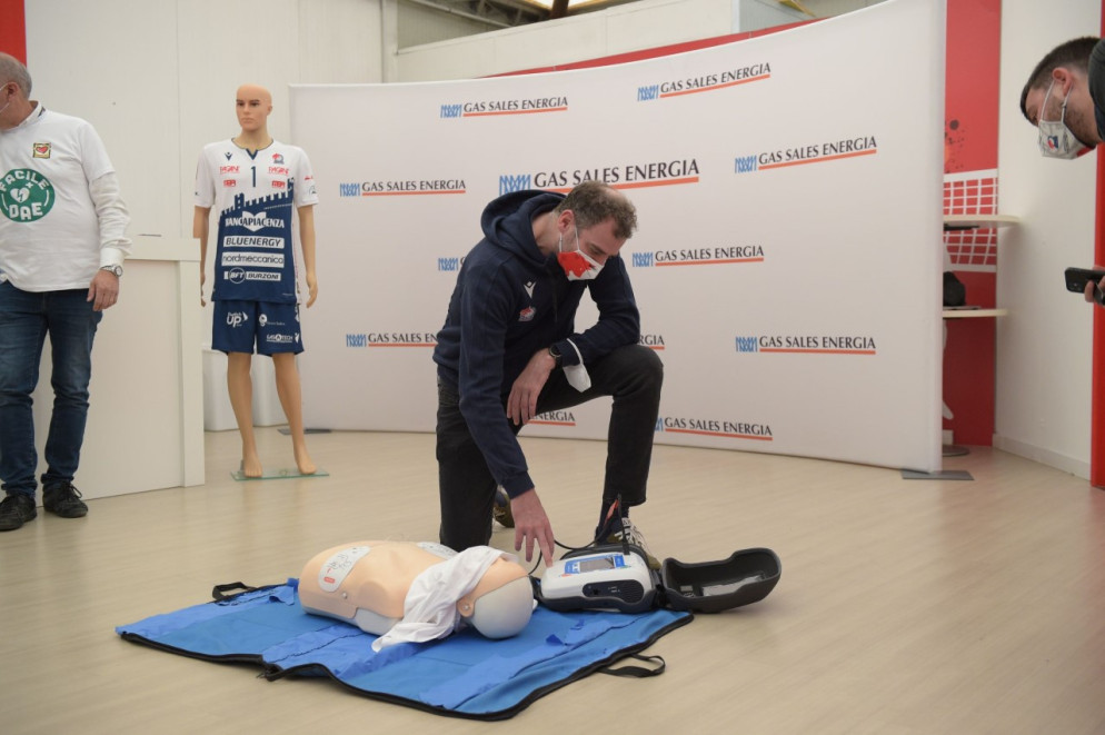 “Sono orgogliosa della collaborazione con la squadra Gas Sales Bluenergy Volley Piacenza che da sempre è testimonial delle nostre iniziative. Anche lo sport non è esente da eventi drammatici di arresto cardiaco – le parole di Daniela Aschieri, presidente dell’associazione Progetto Vita -. Ci ricordiamo tutti di cosa accadde, rispettivamente con esiti diversi, nel 2012 a Vigor Bovolenta e recentemente a Eriksen agli Europei di Calcio del 2021. In quest’ultimo caso, grazie alla presenza resa obbligatoria del defibrillatore ed al suo tempestivo utilizzo, si è potuto salvare una vita. Ogni anno sono oltre cento gli sportivi che in Italia hanno un arresto cardiaco e se gli impianti non sono dotati di un defibrillatore, la loro ripresa non è quasi mai garantita. Per questo bisogna imparare ad usare un Dae anche semplicemente con le tre mosse che abbiamo insegnato oggi. Gli operatori 118 guidano telefonicamente chiunque si trovi in una situazione di soccorso e dando istruzioni.”