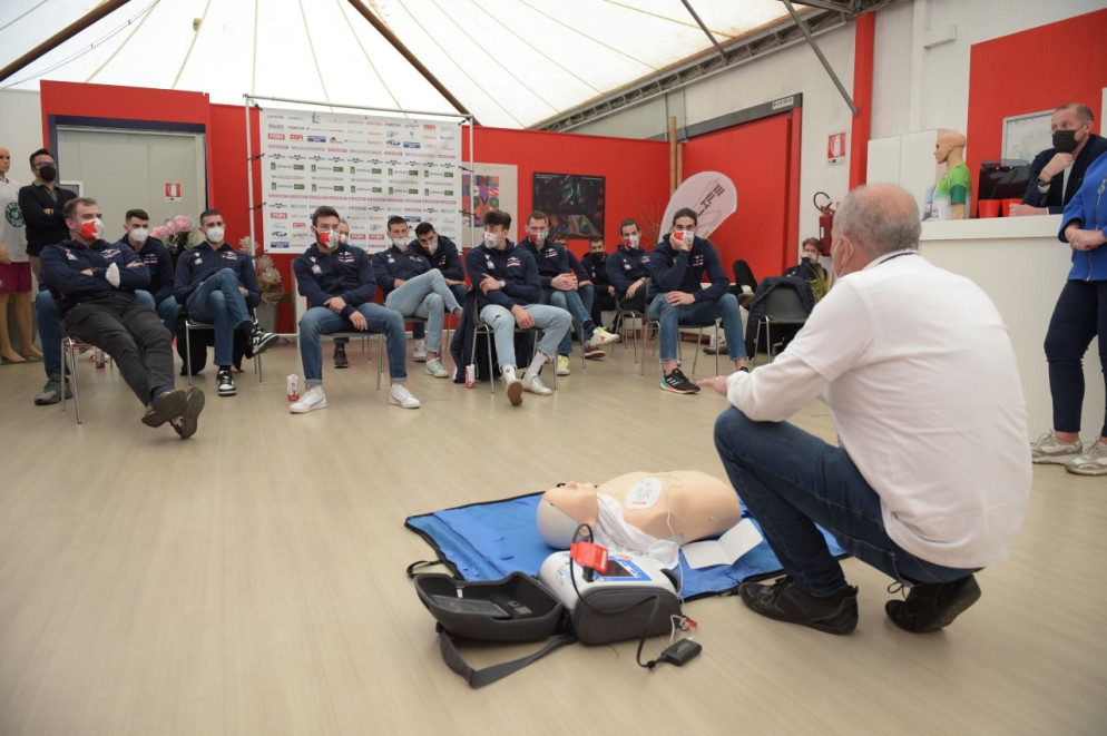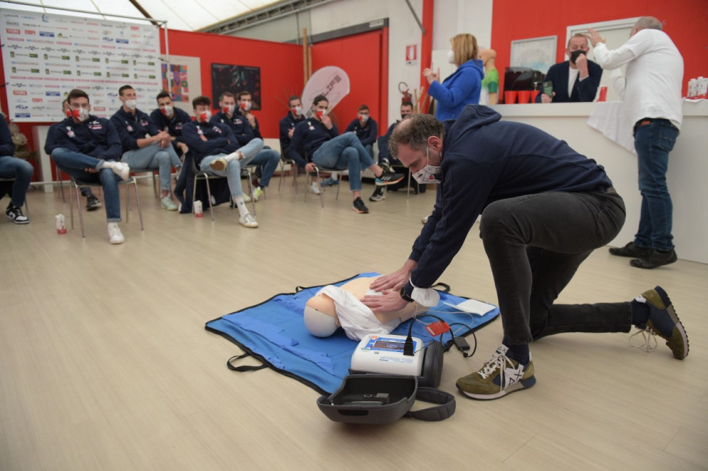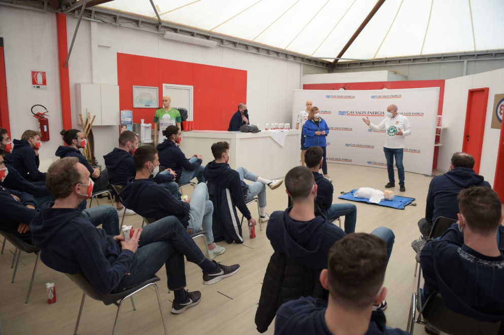 Staff e atleti della Gas Sales Bluenergy volley insieme per imparare il corretto utilizzo del defibrillatore e delle manovre di primo soccorso sanitario. La lezione è stata condotta dagli istruttori di Progetto Vita, al cospetto dell’iniziativa organizzata dalla società sportiva, in sinergia con il Gold Sponsor Tecnolife Srl, che fa parte della campagna “Facile Dai” promossa da Progetto Vita, Anpas e Ircom.