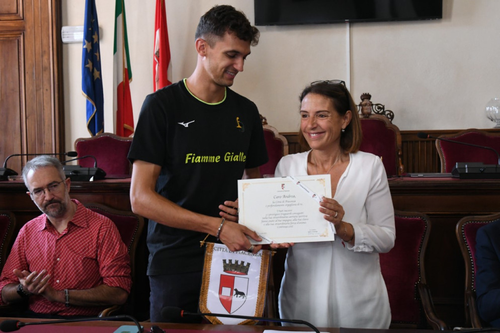 "Piacenza è orgogliosa di te". L'atleta Andrea Dallavalle premiato in Comune