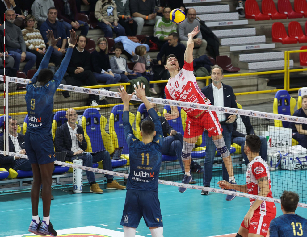 Sembrava ad un passo dal baratro, con una sonora sconfitta casalinga alle spalle e voci di un cambio in panchina sempre più insistenti. E invece, nonostante i cerotti, nonostante i mille rumors che la indicavano ormai alle corde e una squadra assetata di riscatto dall’altra parte della rete, la Gas Sales Bluenergy Piacenza è riuscita a centrare l’obiettivo. Battendo Verona dopo oltre due ore di gioco, i biancorossi hanno staccato il pass per le Final Four di Coppa Italia, dove affronteranno Perugia (vincente 3-0 su Cisterna) nel weekend del 25/26 febbraio a Roma.