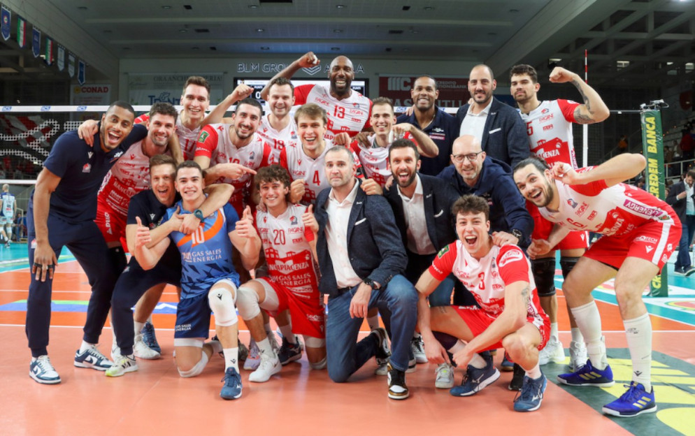 Gas Sales Bluenergy Volley Piacenza: battute sbagliate 16, ace 10, muri punto 5, errori in attacco 9, ricezione 32% (17% perfetta), attacco 49%.