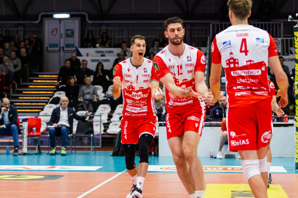 Prima l’ebbrezza della fuga, poi la rimonta avversaria e il sentore di una beffa dietro l’angolo, alla fine il sospiro di sollievo che spazza via le nubi e fa tornare il sole. Ci sono volute due ore e mezza di gioco alla Gas Sales Bluenergy Piacenza per battere Taranto 3-2, al termine di un’autentica maratona ricca di colpi di scena. Un successo fondamentale per la squadra di Massimo Botti, che dopo le due sconfitte consecutive in Superlega contro Siena e Monza sfata il tabù PalabancaSport uscendo tra gli applausi e tornando a smuovere la classifica in ottica playoff.