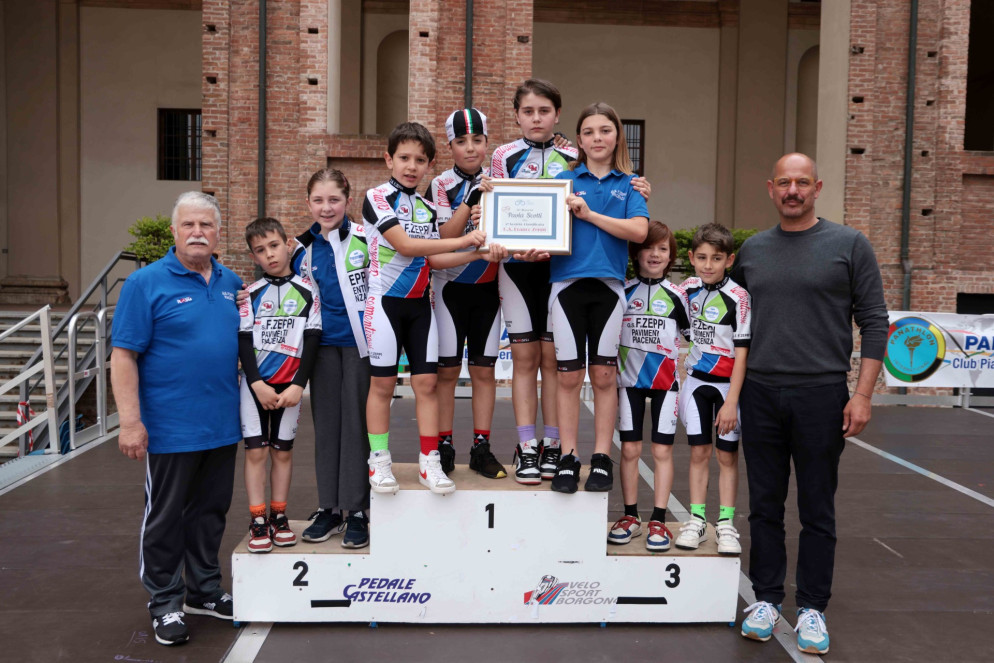Festa nel “cuore” di Piacenza per i “baby-ciclisti” che hanno animato il primo Trofeo Panathlon, manifestazione riservata alla categoria Giovanissimi (bambini e bambine fino ai 12 anni) organizzata dal Gs Luigi Maserati in collaborazione con il Gs Cadeo Carpaneto. I ciclisti in erba si sono cimentati su un anello di 550 metri disegnato attorno a Palazzo Farnese da ripetere più volte a seconda delle categorie. Una volta terminate le varie gare, tutti nel cortile di Palazzo Farnese per le premiazioni in una suggestiva cornice. La classifica per società è stata vinta dal Velo Club Cremonese (che si è aggiudicata il Trofeo Panathlon) davanti alla reggiana Ciclistica 2000 Litokol (vincitrice del Trofeo Banca di Piacenza, rappresentata dal consigliere d’amministrazione Domenico Capra). Terza classificata (Trofeo Carlo Cammi), la piacentina Gs Franco Zeppi.