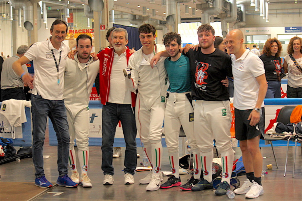 Il percorso del Pettorelli è cominciato con tre nette vittorie nel girone dove i quattro moschettieri biancorossi – Francesco Curatolo, Andrea Polidoro, Amedeo Polledri e Tommaso Bonelli, sotto la guida attenta del Boss – si sono imposti in modo netto. Il primo ostacolo è stato Mestre, superato 45-27. Nessun problema nemmeno contro Rieti, battuta 45 a 32. Il terzo avversario, Pordenone, è stato addirittura “asfaltato” 45-15. La squadra – in gara ce n’erano 24 – è entrata così di diritto nelle 8 che sarebbero salite in pedana per i play off. Un avversario ostico è stato Catania, ma i piacentini l’hanno superato 45-39. Prossimo step le semifinali, dove Piacenza ha incontrato il forte Lugo (si piazzerà secondo, battuto soltanto da Pavia che ha vinto il campionato). I romagnoli, nonostante o sforzo dei piacentini, si sono imposti 44-32. Non è finita, perché il Pettorelli è atteso alla finale per il terzo e quarto posto. Anche se per poche stoccate, la meglio l’avuta Castelfranco Veneto per 45-41.