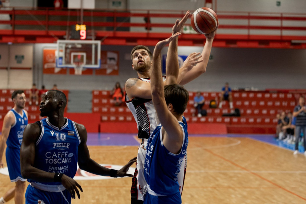 Non basta una buona prestazione dei ragazzi di coach Salvenimi per piegare la Pielle Livorno: 67-78 il risultato finale. Terzo turno del campionato di Serie B Nazionale Lnp Old Wild West 2023/24, e la Bakery Basket Piacenza affronta la Pielle Livorno. La gara si gioca da subito su ritmi elevati, ed anche se entrambe le squadre sbagliano tanto al tiro nessuno dei due allenatori chiama timeout. Segno che sono comunque soddisfatti di come i propri giocatori hanno approcciato alla sfida. Il primo vantaggio per i biancorossi arriva al 4’, con un Besedic ‘on fire’ che segna il 10-9. Il centro sloveno impensierisce gli avversari sia vicino canestro che dall’arco. Ma se Livorno non riesce a segnare con continuità è anche grazie al lavoro difensivo dei ragazzi di coach Salvemini. In particolare Maglietti è un francobollo, ma in generale è tutta la squadra a sacrificarsi per il bene comune.