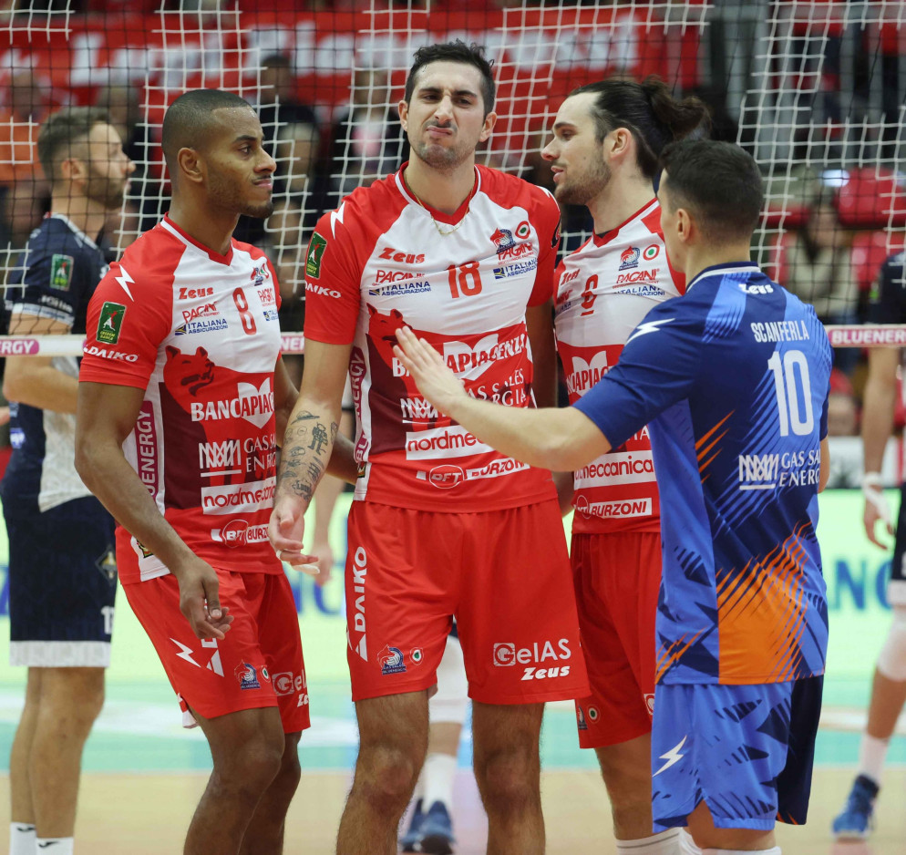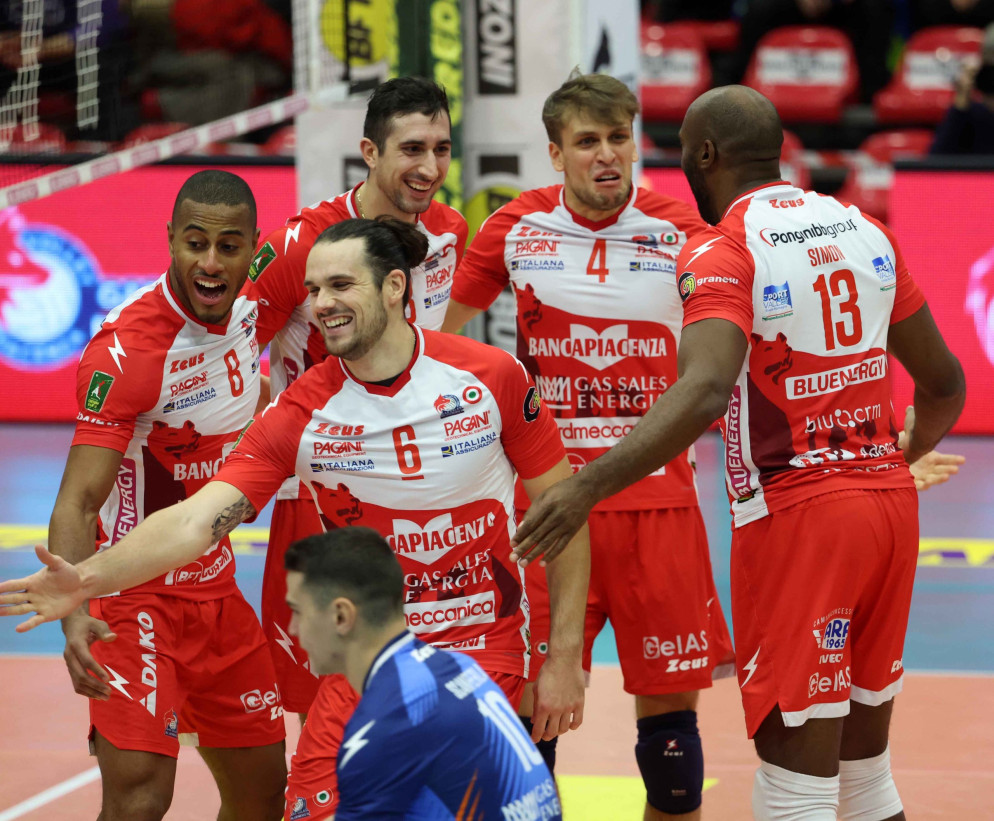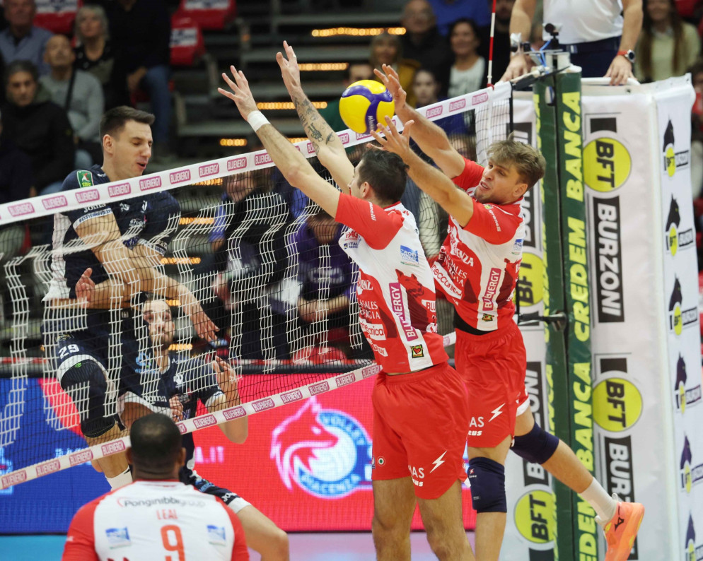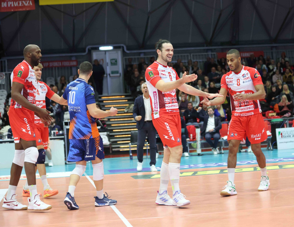 Un primo set vinto 25-13 che sembrava essere il preludio a una scorpacciata, poi il calo (soprattutto in difesa e a muro), ma la vittoria che comunque arriva sul 3-1. È l’estrema sintesi della sfida tra Gas Sales Bluenergy Piacenza e Top Volley Cisterna, con i biancorossi che – pur sudando più del dovuto – riscattano la sconfitta subita sabato sera in casa di Trento. L’impressione è che servirà ben altro per battere Perugia domenica prossima, prima dell’esordio in Champions League contro Ankara mercoledì prossimo e la nuova trasferta in casa della lanciatissima Monza di domenica 26.
