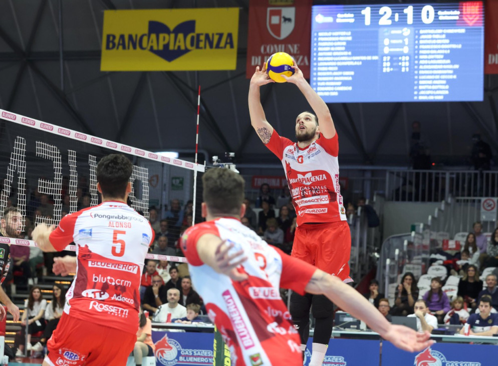 I SESTETTI – Piacenza in campo con Recine e Lucarelli schiacciatori, Birzard al palleggio, Romanò opposto, Simon e Caneschi centrali con Scanferla libero.
