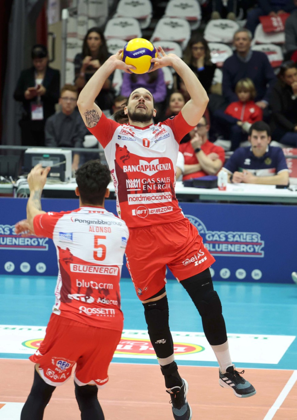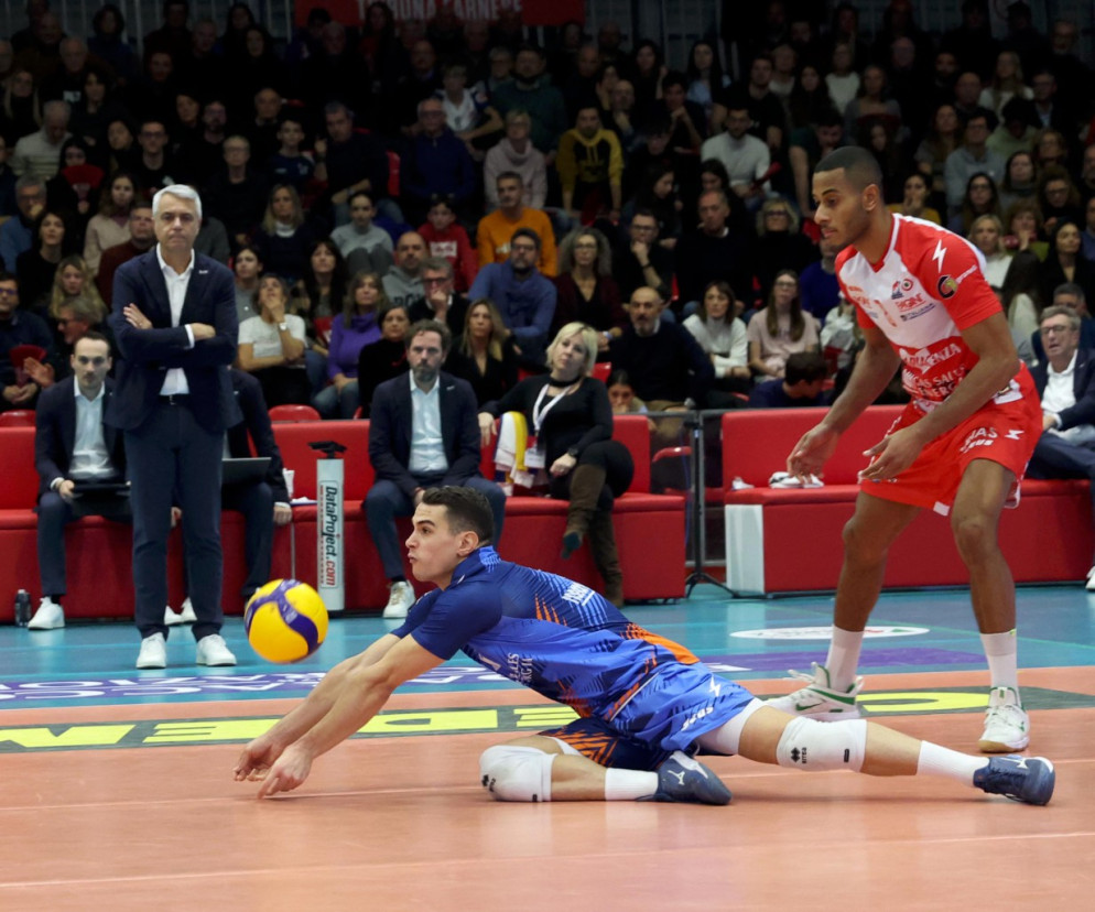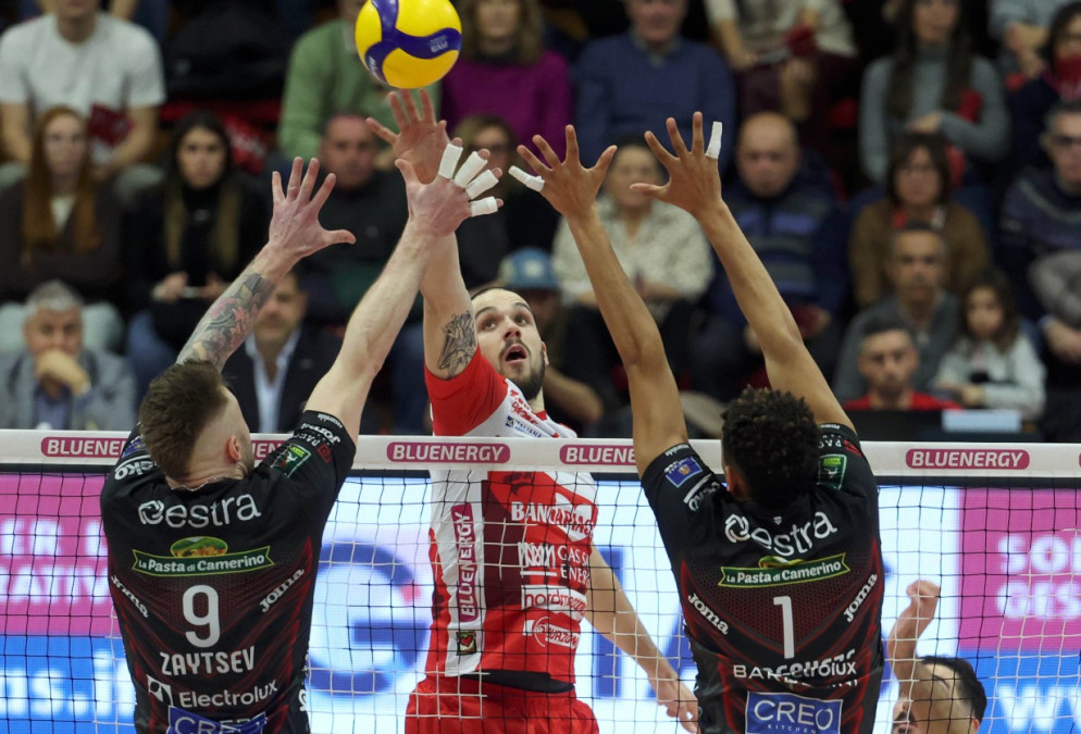 Civitanova risponde con Zaytsev e Nikolov in banda, De Cecco in cabina di regia e Lagumdzija opposto, Chinenyeze e Anzani centrali con Balaso libero.