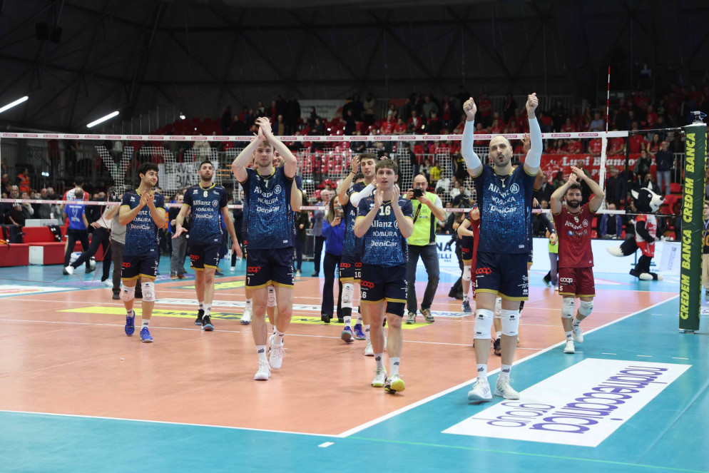 Come in una sorta di malefico “eterno ritorno”, il copione non cambia nemmeno nel terzo periodo. Piacenza balza al comando, ma come al solito non riesce a piazzare l’allungo decisivo, macchiando la propria prova con errori continui a muro e in difesa. L’Allianz non sta certo a fare complimenti e guidata come sempre dalla propria migliore organizzazione in tutti gli aspetti del gioco, recupera e mette la freccia nel finale, chiudendo 25-22.